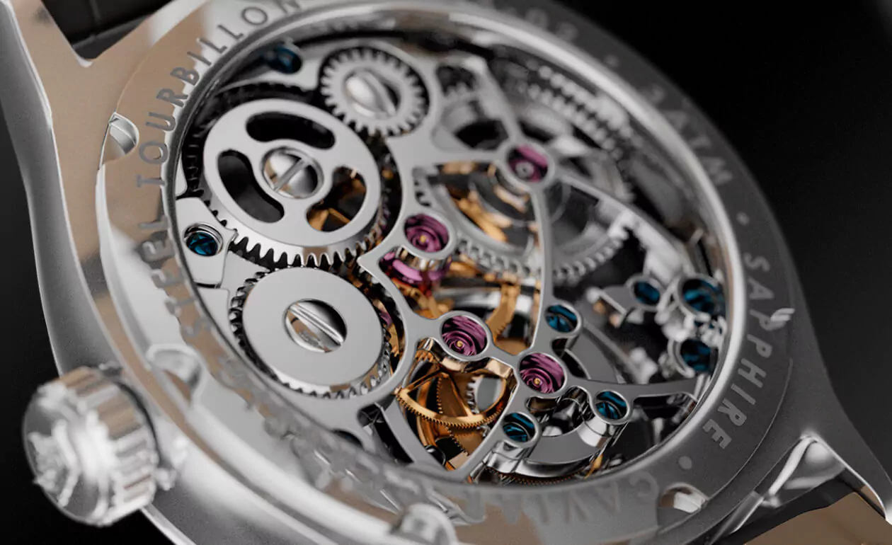 Mechanism: CVR ELT3350A Tourbillon, mechanism with manual winding, 19 stones.