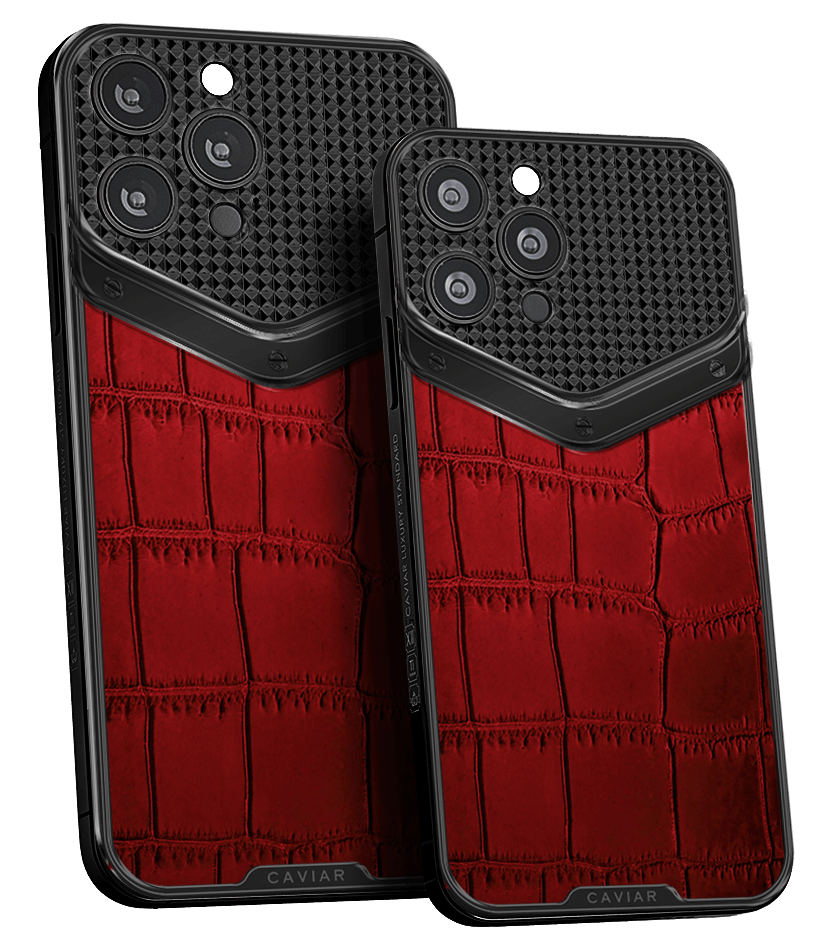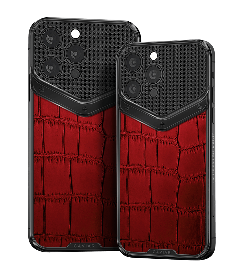 The reimagined shapes of the Victory model ehcnant everyone around you with a blend of flowing lines and a rugged yet elegant Clous de Paris embossed pattern. The body of the smartphone is made of durable titanium with black PVD coating. The body is adorned with red genuine crocodile leather and the signature Caviar tick with decorative bolts.
