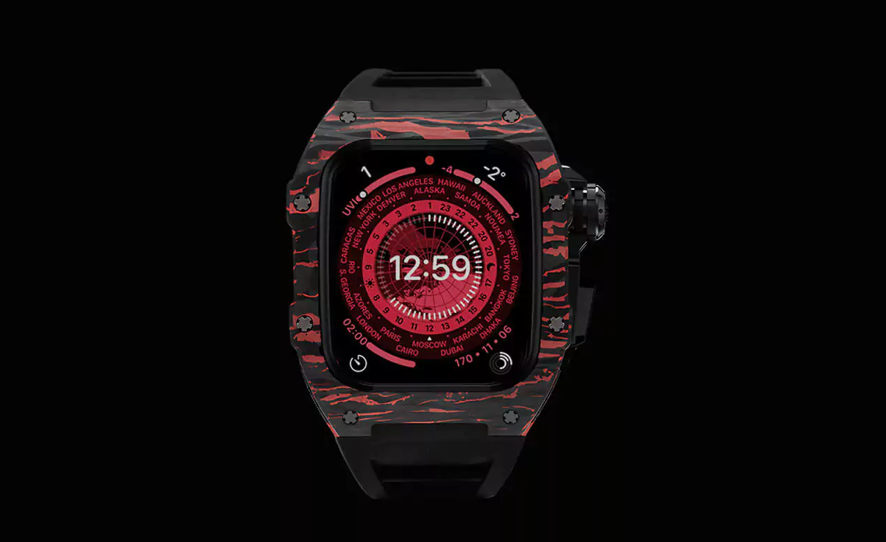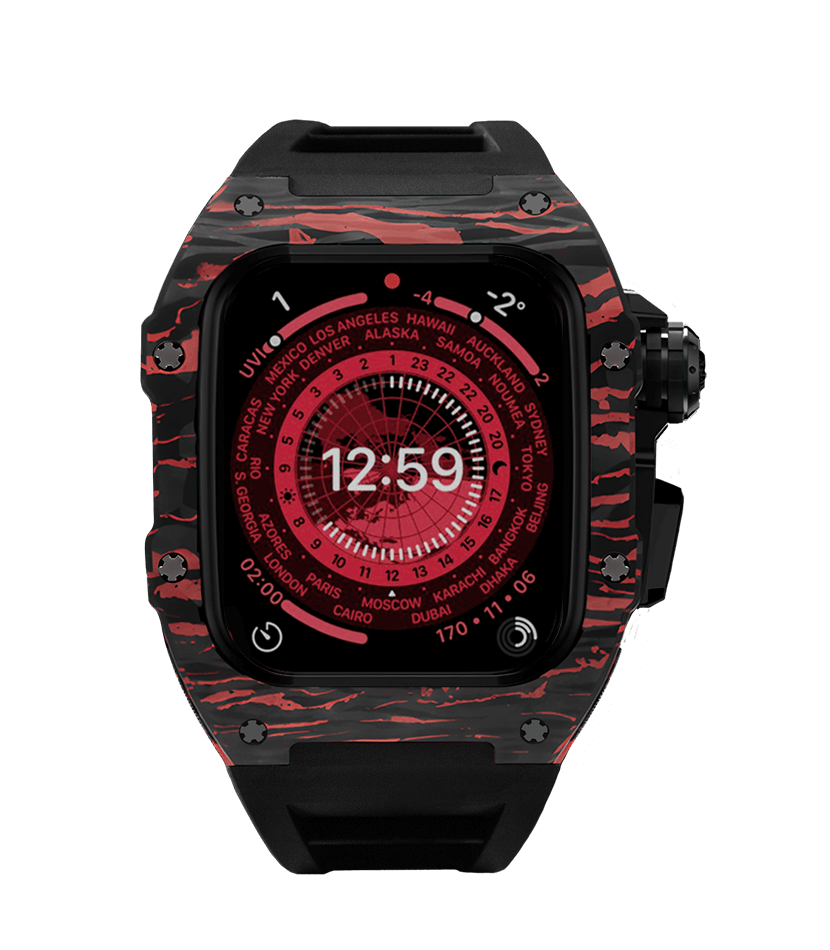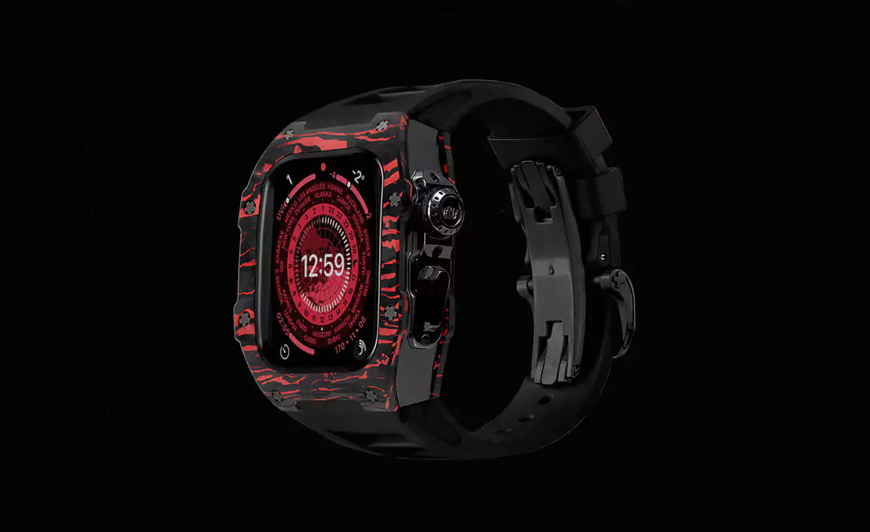 Caviar has created a luxurious accessory to accentuate your fiery energy. Extreme Hellfire is an Apple Watch case in the style of a supercar. It is made of carbon with inlaid stripes of explosive red color, which make it resemble the iconic Ferrari 512 TR.