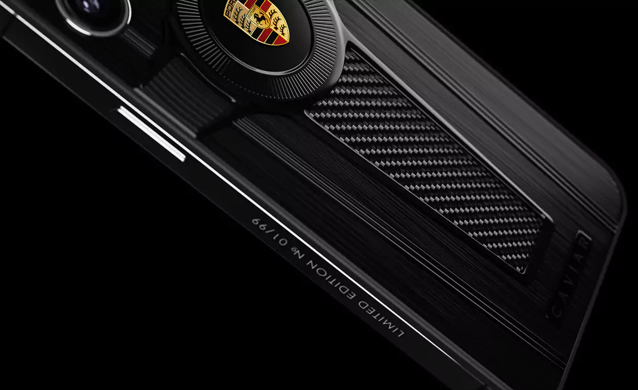 Glossy black titanium, satin titanium, and black carbon – each element, while being “in tune” with the others, brings a unique note to the design of the phone. A striking accent of the model is the majestic Porsche emblem painted with jewel-encrusted enamel.