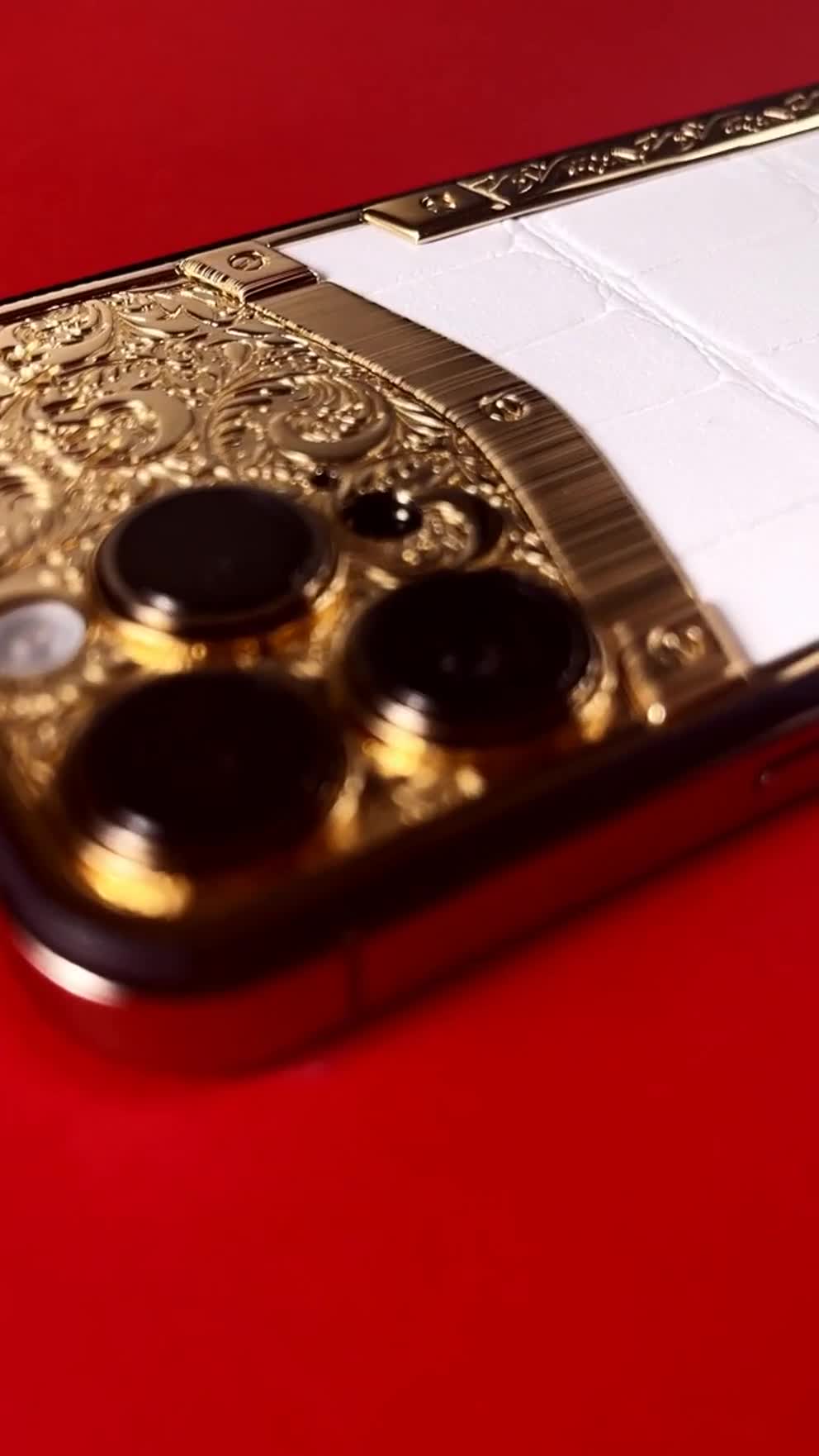 Victory Gold Wind is a deluxe interpretation of the new iPhone 14 Pro color. The solid 18K rose gold body is delicately decorated with satin finish. The back of the smartphone features the insert of a crocodile leather of the purest white color. This model is the very embodiment of tenderness and sophistication.