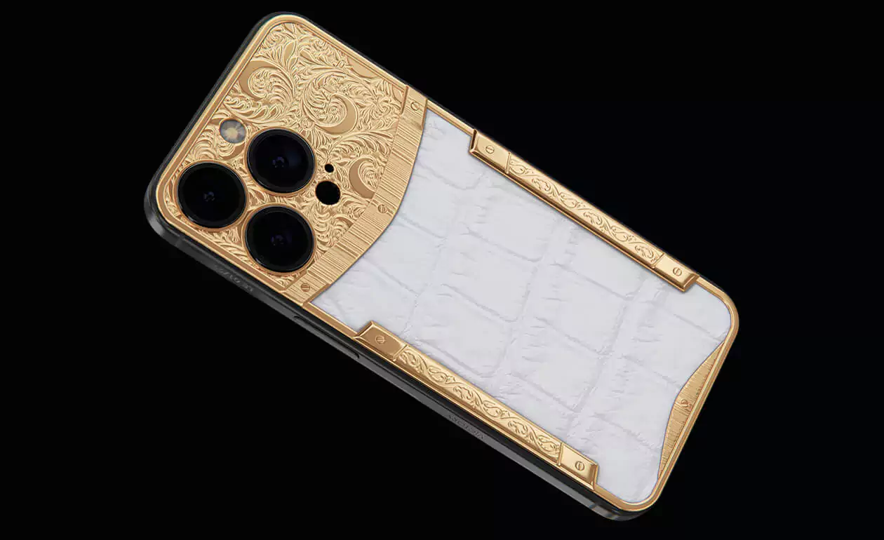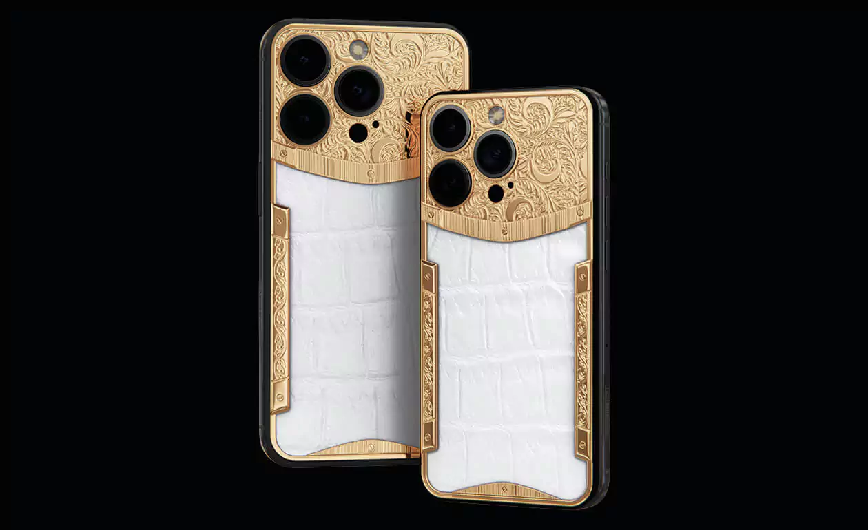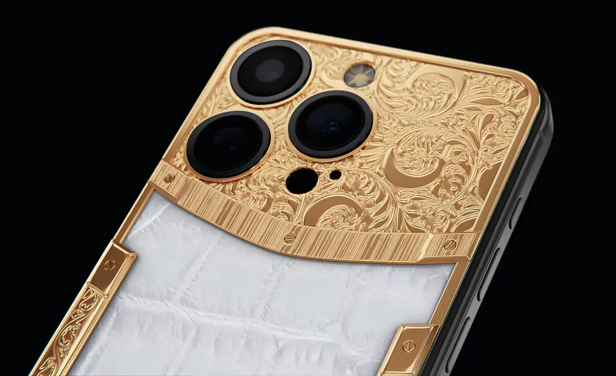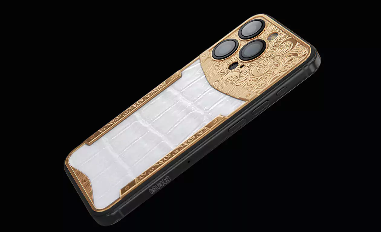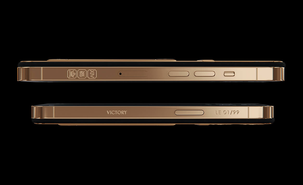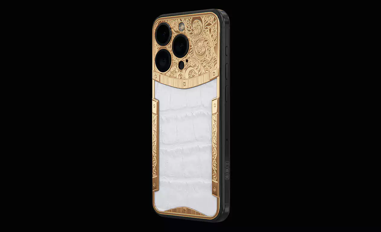 Victory Gold Wind is a deluxe interpretation of the new iPhone 14 Pro color. The solid 18K rose gold body is delicately decorated with satin finish. The back of the smartphone features the insert of a crocodile leather of the purest white color. This model is the very embodiment of tenderness and sophistication.