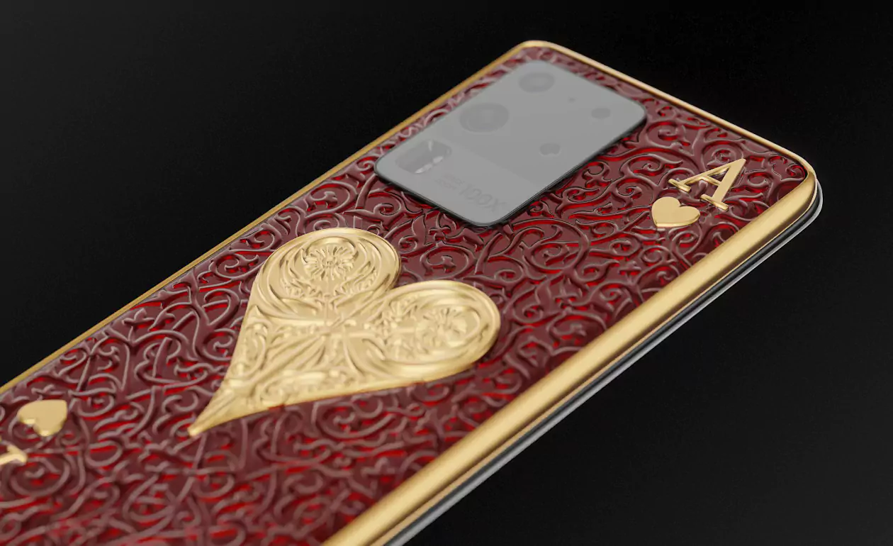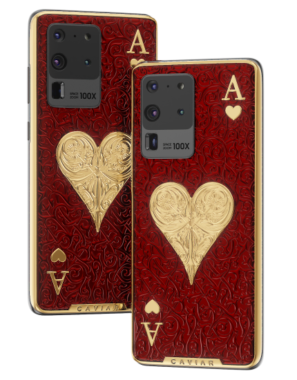 A relief image of the ace of heart is placed on red composite stone with an exquisite engraving. For a special, dazzling attractiveness, Caviar jewelers covered it with pure gold of 999 content. Your luck is in your hands. Rule the human passions with the new design of Caviar Samsung Galaxy S20 Fortune Ace Of Hearts.