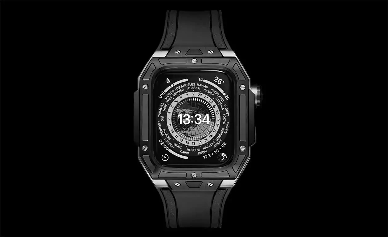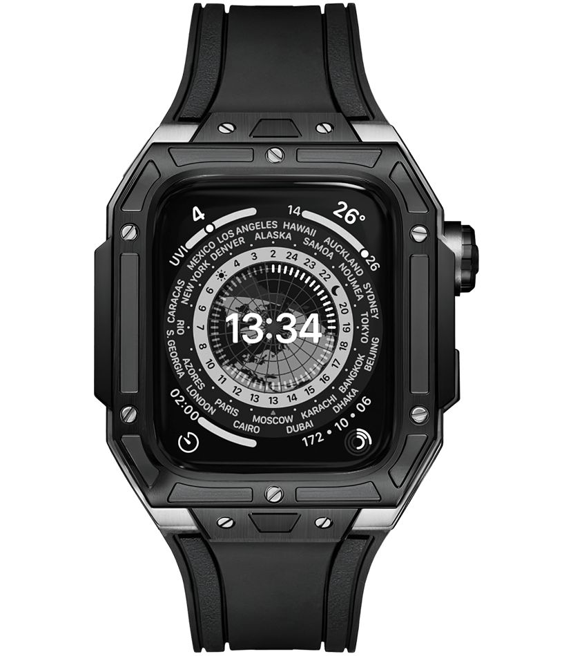 Step up to a whole new level with the Supreme Archon case for Apple Watch. This case, meticulously designed from 316L stainless steel with a sleek black rubber strap and a ceramic rim, seamlessly combine an aura of masculinity and status. With its trusted reliability, elegant aesthetics, and refined craftsmanship, it is meticulously created to emphasize your distinct style and unique persona. This is the ideal accessory for individuals seeking genuine luxury and uncompromising quality. Unveil your unparalleled individuality to the world with the Supreme Archon.