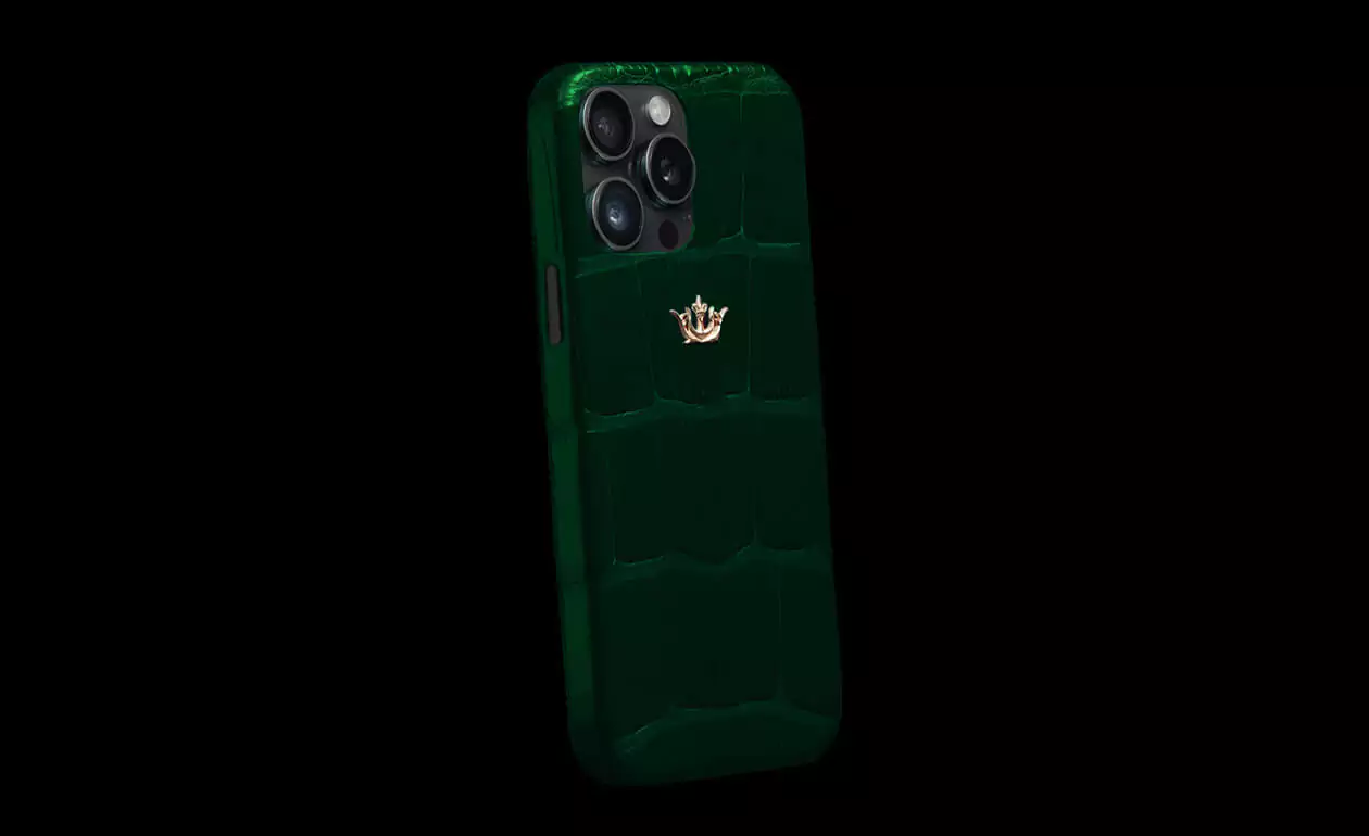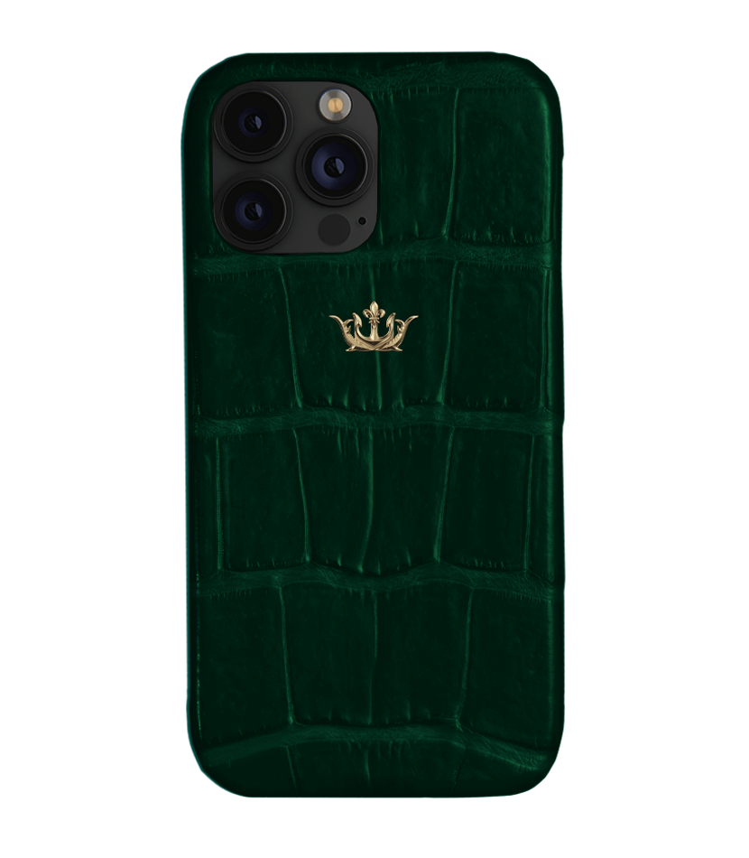 Caviar experts selected premium crocodile leather in emerald color to customize the original Apple case. We have also placed on it the signature crown of Caviar, covered with 24 karat gold, to highlight your royal style.