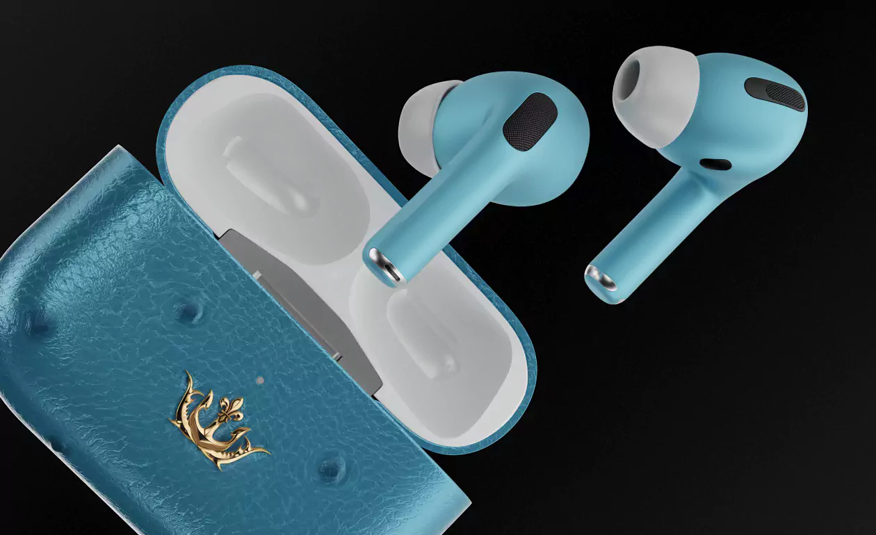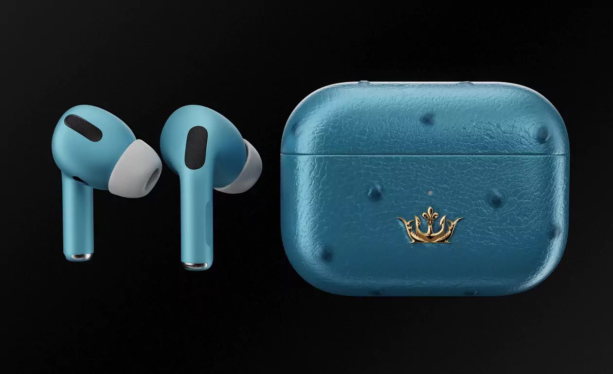 Caviar Airpods Pro Cruise Bali made of ostrich leather of tender turquoise color is like a reflection of pure, endless sky and ocean waves sparkling in the sun. A genuine embodiment of peace and calm.