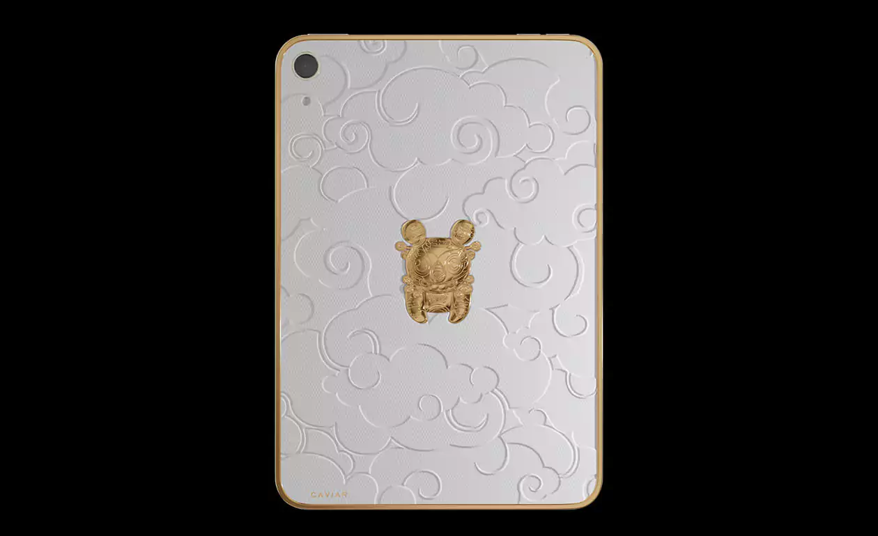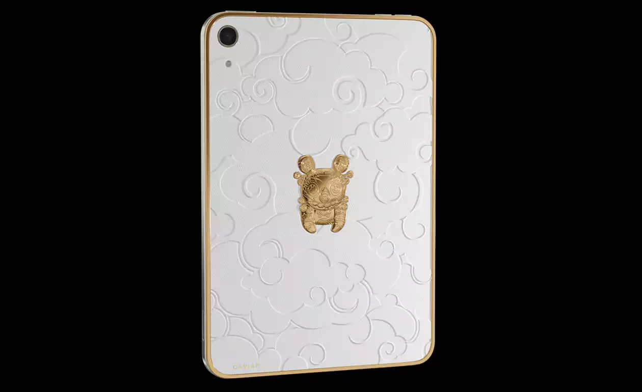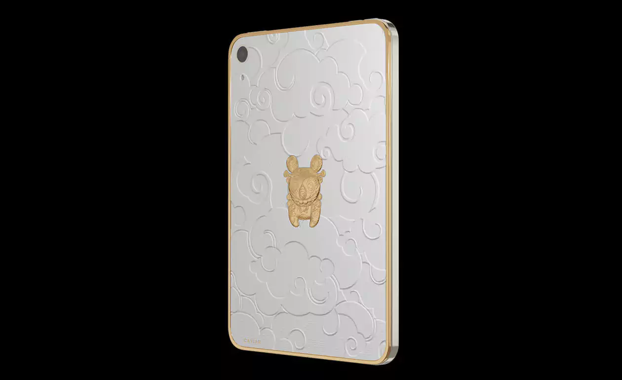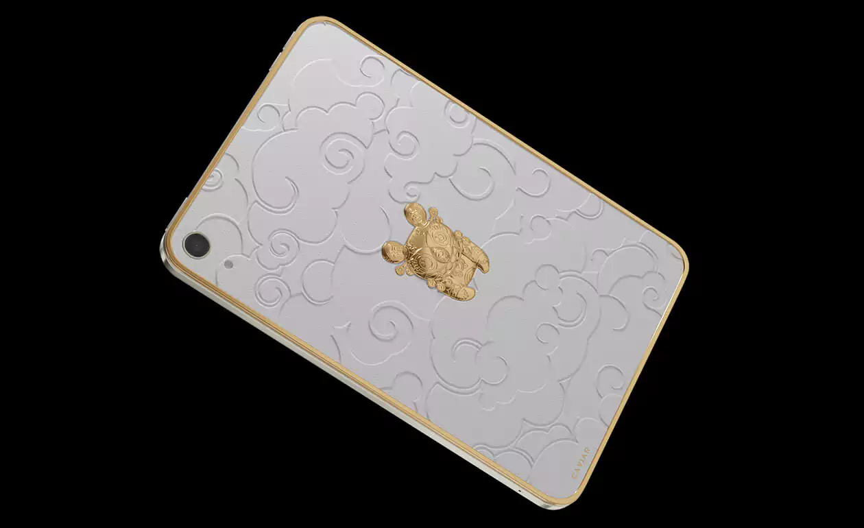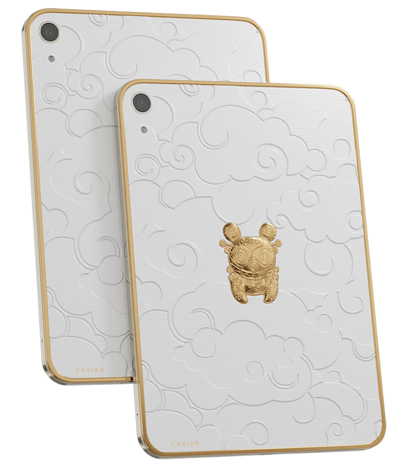 Caviar designers covered the sleek iPad mini 6 with a lightweight, shockproof white composite material to represent the clouds. A little baby tiger is floating in the clouds. The cub is made of a gold alloy coated with gold using the Double Electroplated (24K) technology.