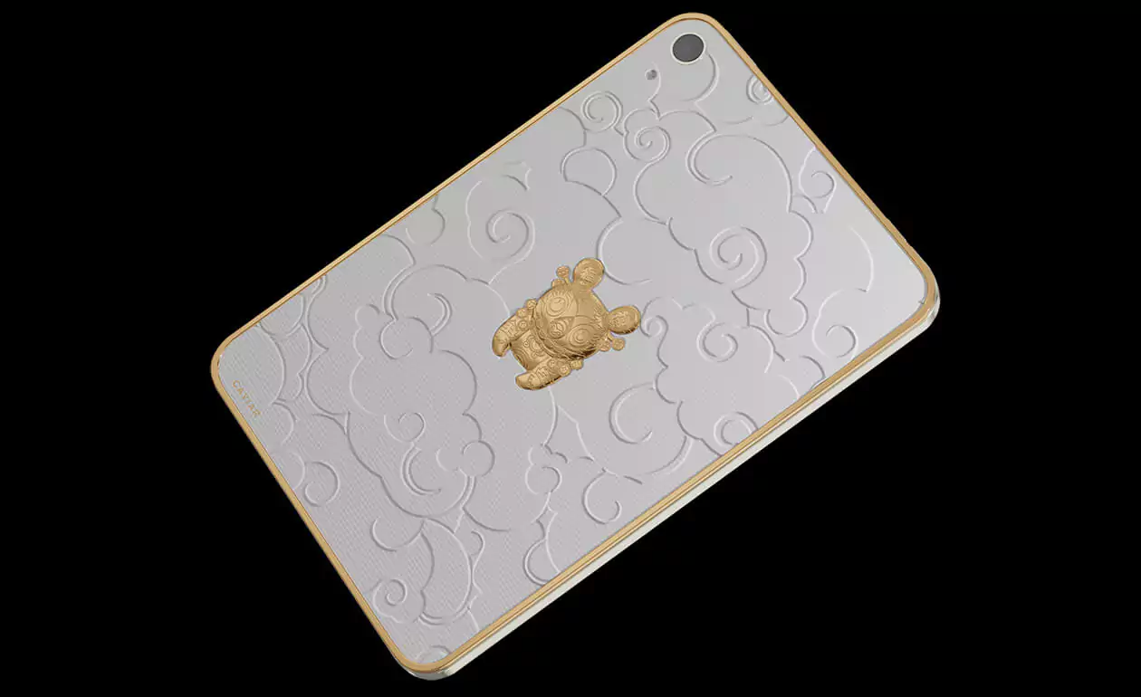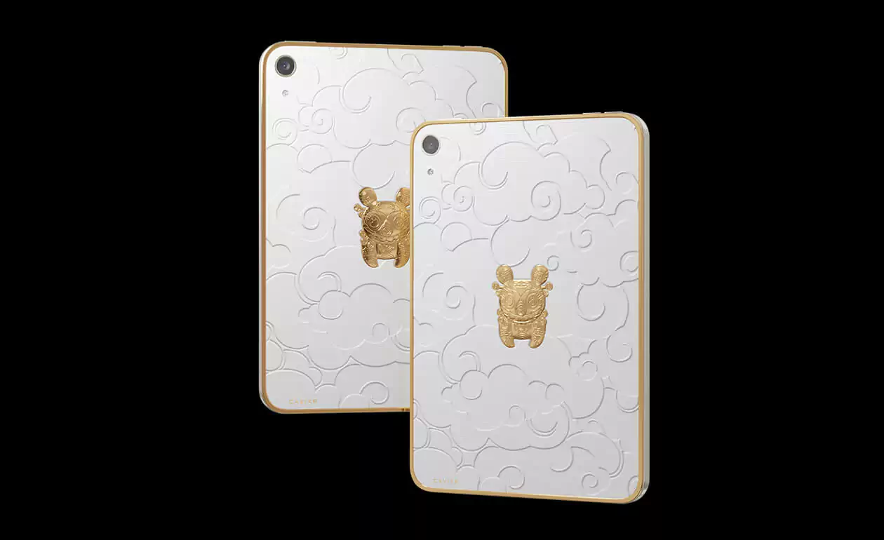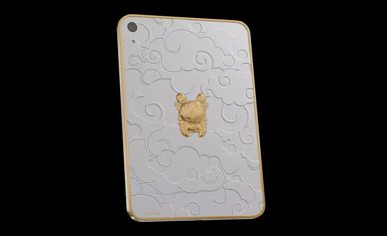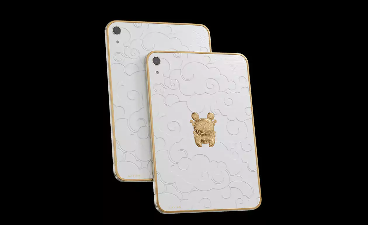 Caviar designers covered the sleek iPad mini 6 with a lightweight, shockproof white composite material to represent the clouds. A little baby tiger is floating in the clouds. The cub is made of a gold alloy coated with gold using the Double Electroplated (24K) technology.