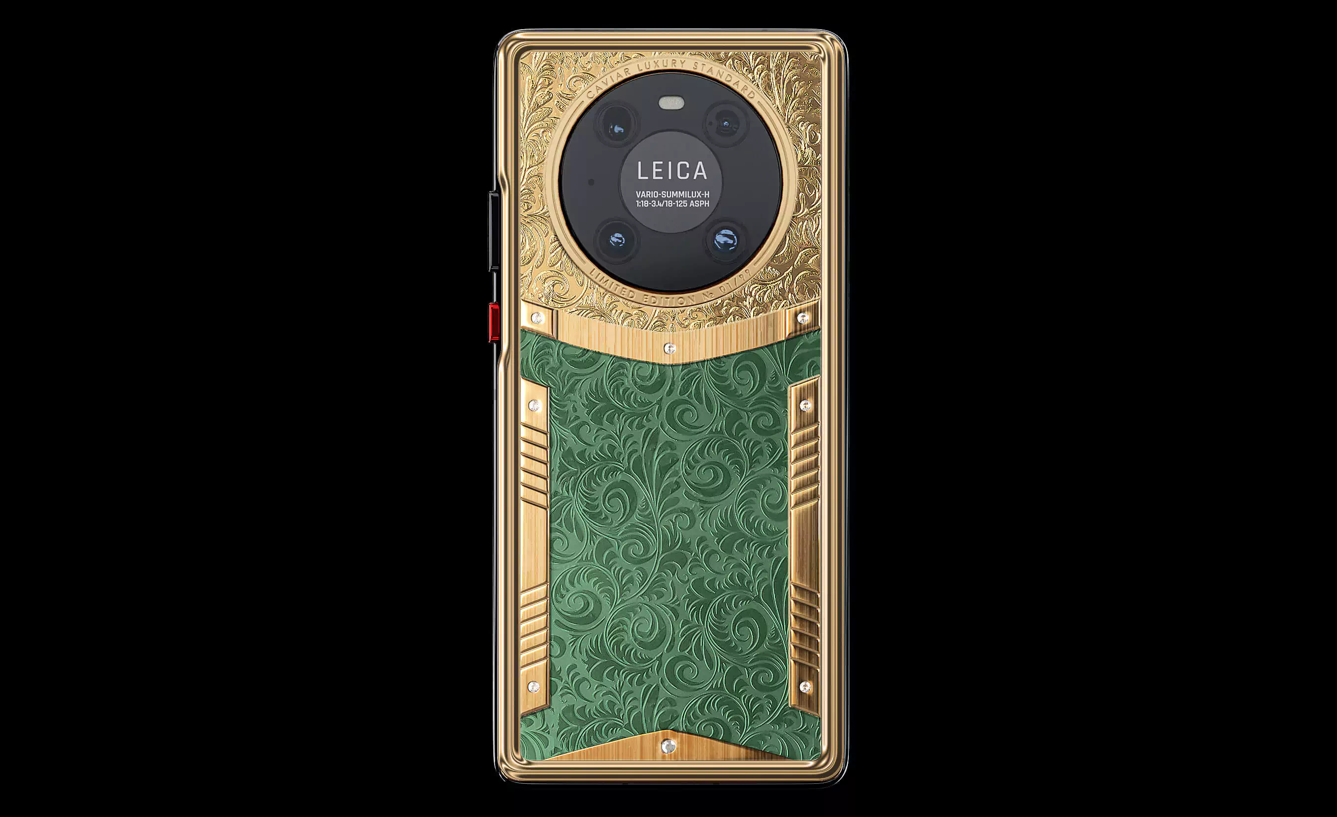 Caviar Huawei Mate 40 Pro Victory Emerald is a true masterpiece of jewelry art. The body covered with 999-content gold according to the technology Double Electroplated. The smartphone is encrusted with 8 round diamonds. A specific piquancy is provided to the model by the artistic engraving in the style of Russian national ornaments.