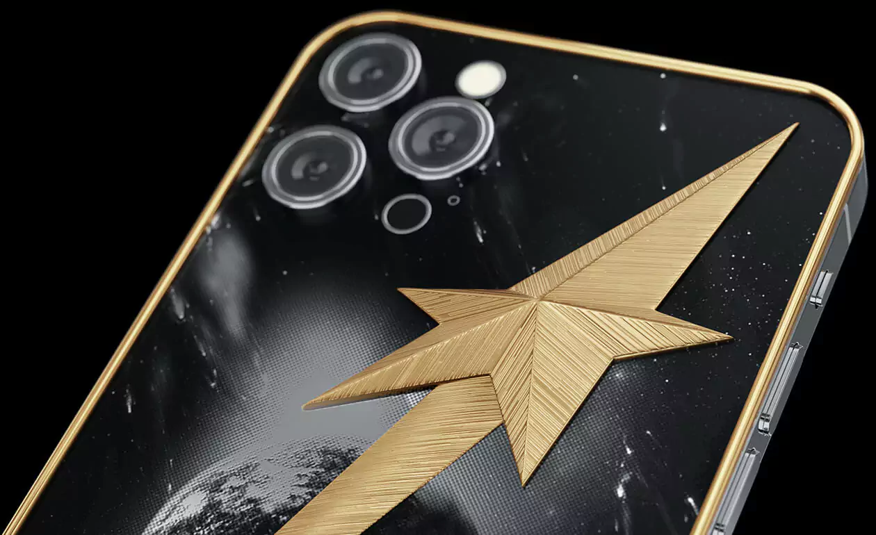 The body of the smartphone is made of hardened titanium with an artistic engraving of a monochrome space landscape. Double coating of 999 gold made in Double Electroplated technique, 7 microns was used in the decor. There is an engraving on the case, containing the date of the launch of the first satellite. It says: The father of practical astronautics, 4 October 1957.