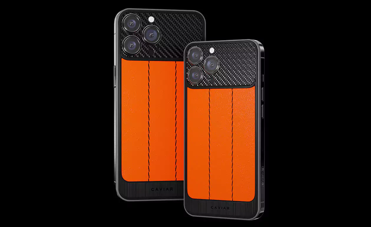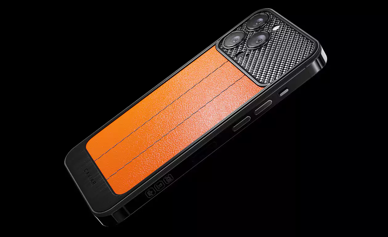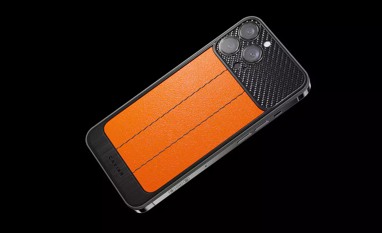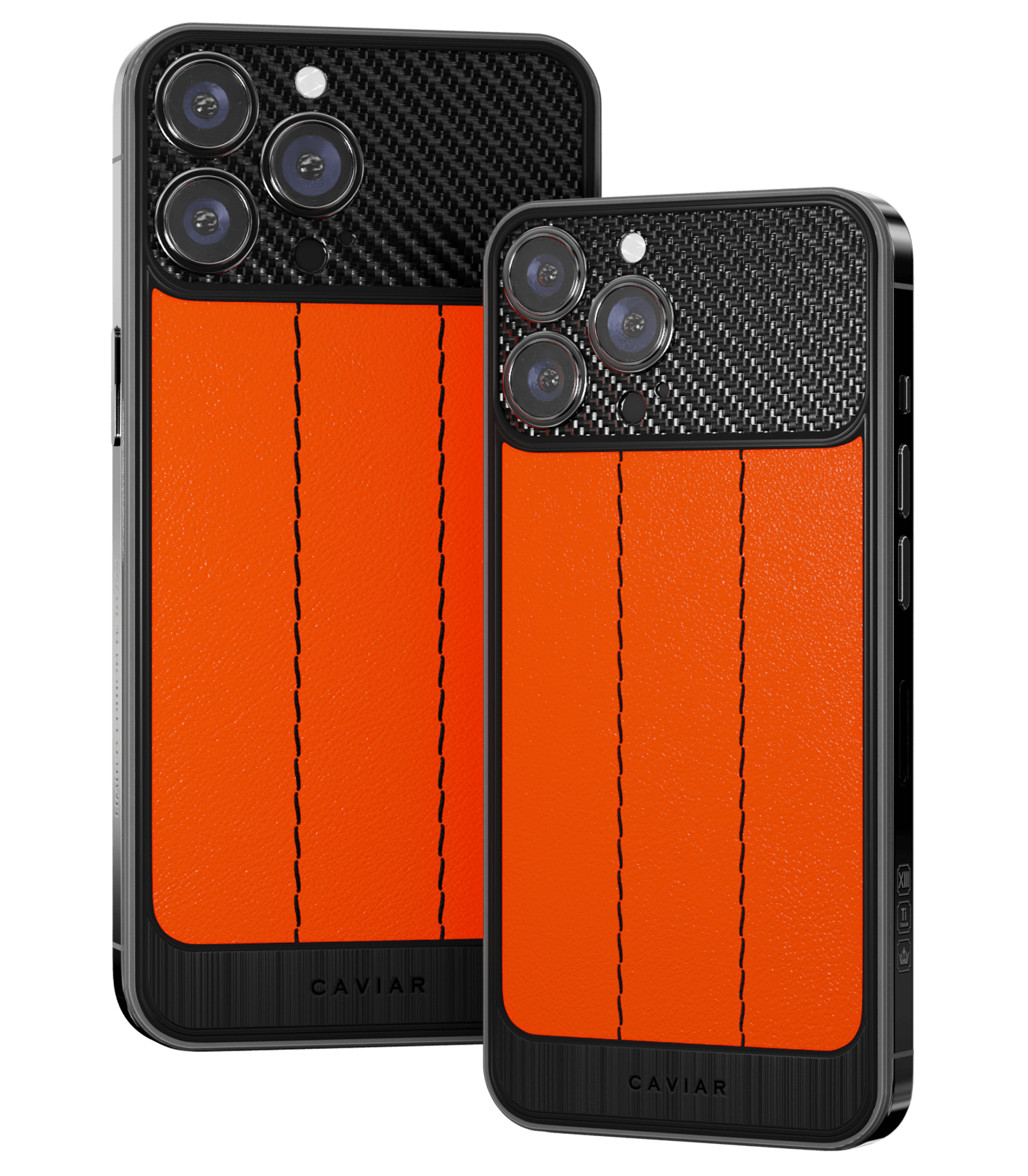 The vibrant combination of orange and black inspired Caviar designers to create the dynamic Caviar iPhone 12 Pro.