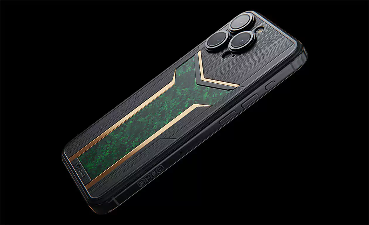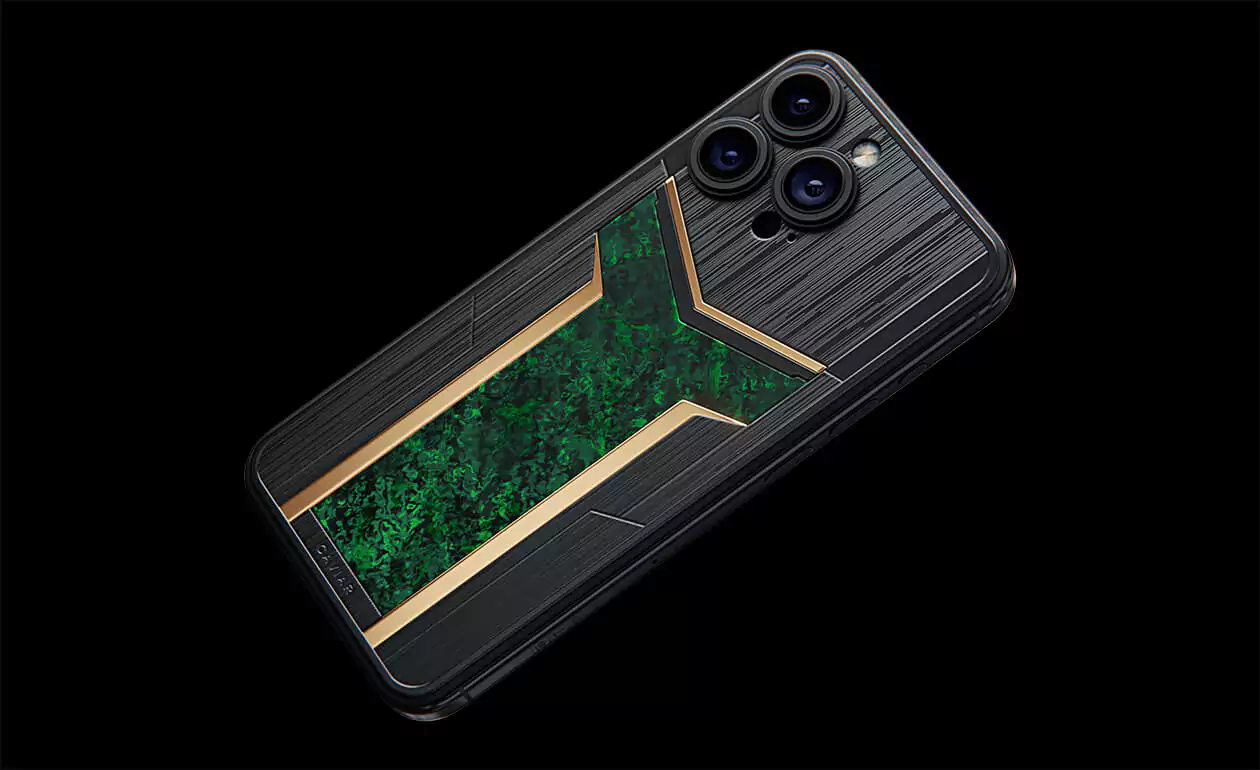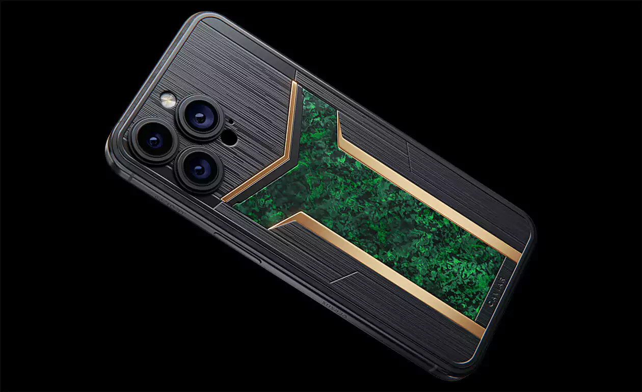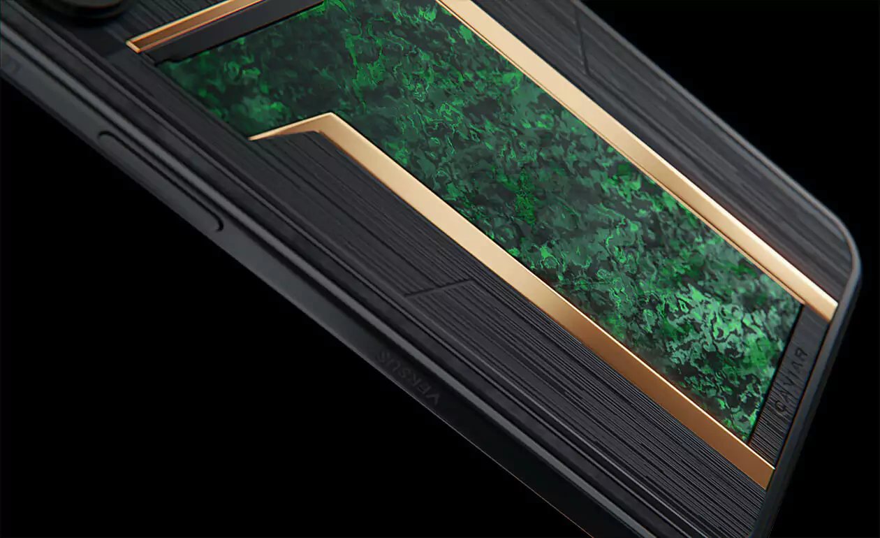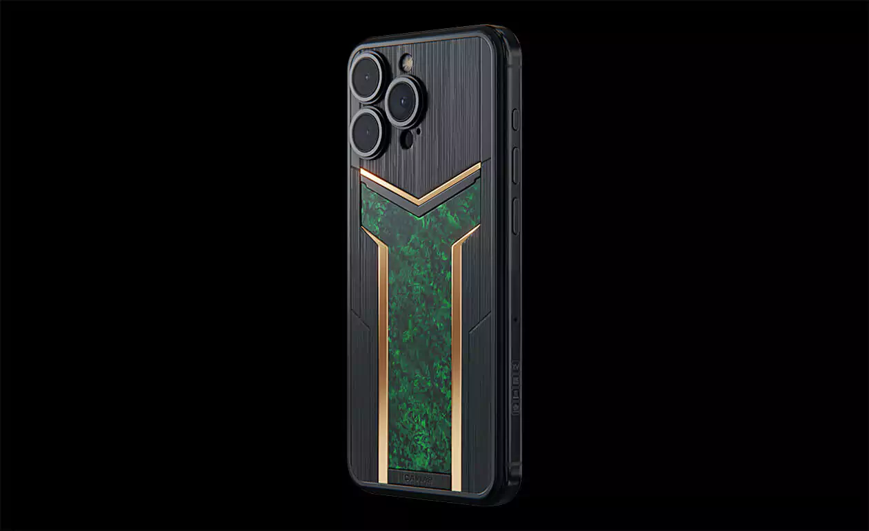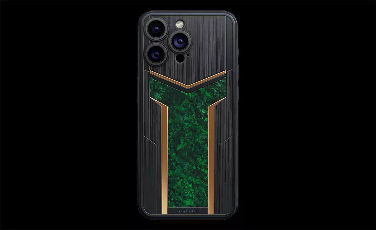 Custom iPhone that transcends conventional design, blending innovation with an unmistakable edge. Versus Verdant in black and green hues, featuring a striking carbon panel reminiscent of a sleek helmet, promises to captivate your senses from the very first glance.
