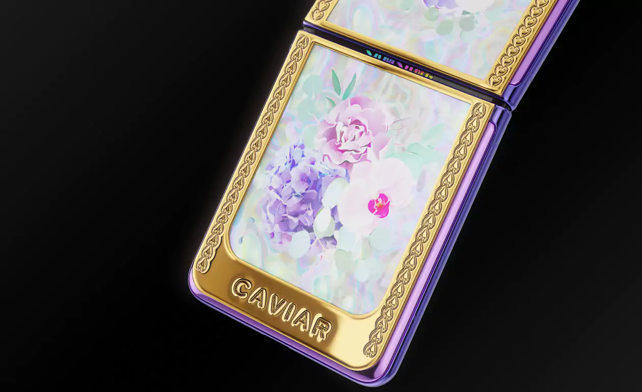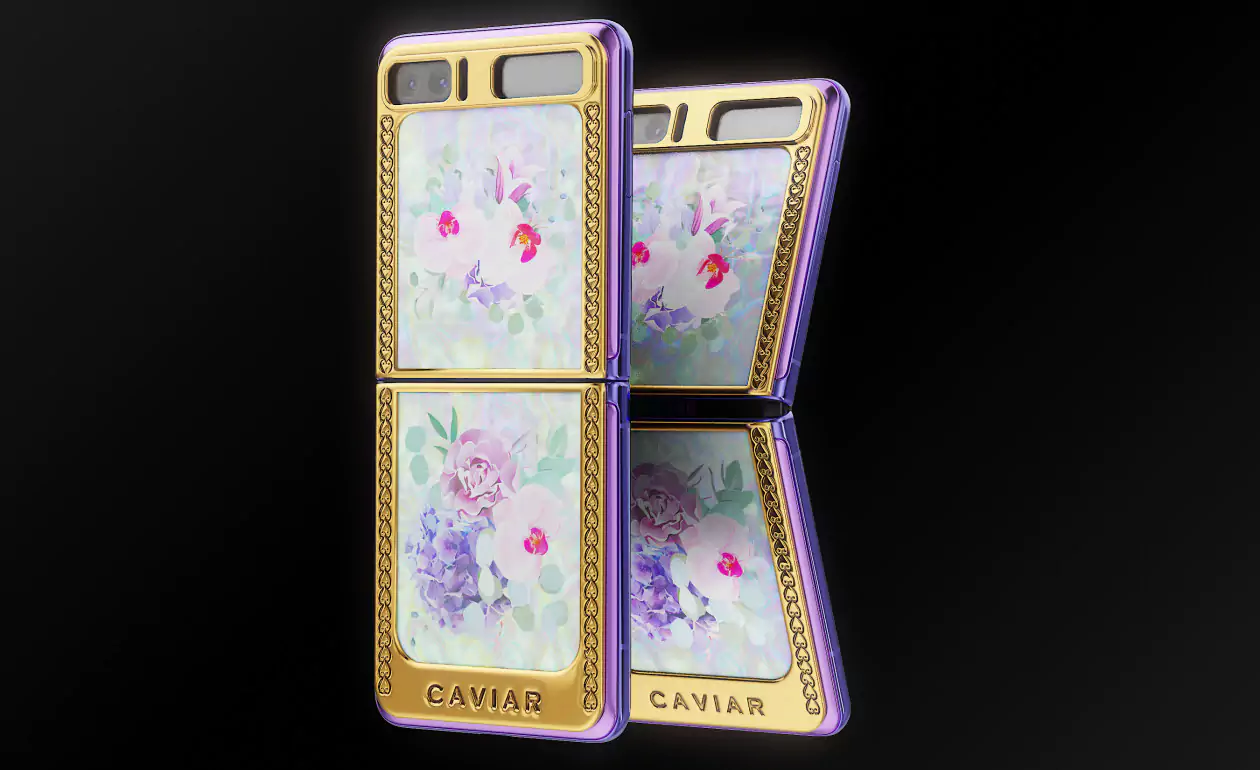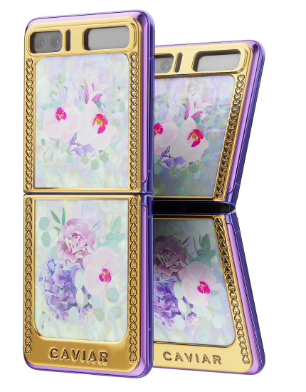 The Caviar Samsung Galaxy Z Flip Pearl Orchid is a truly unique smartphone model. The case is hand-painted by the artist on pearl, which makes each piece exceptional and inimitable. In the language of flowers, a delicate pink orchid means femininity. These flowers are presented to ladies to express admiration for their beauty and charm.