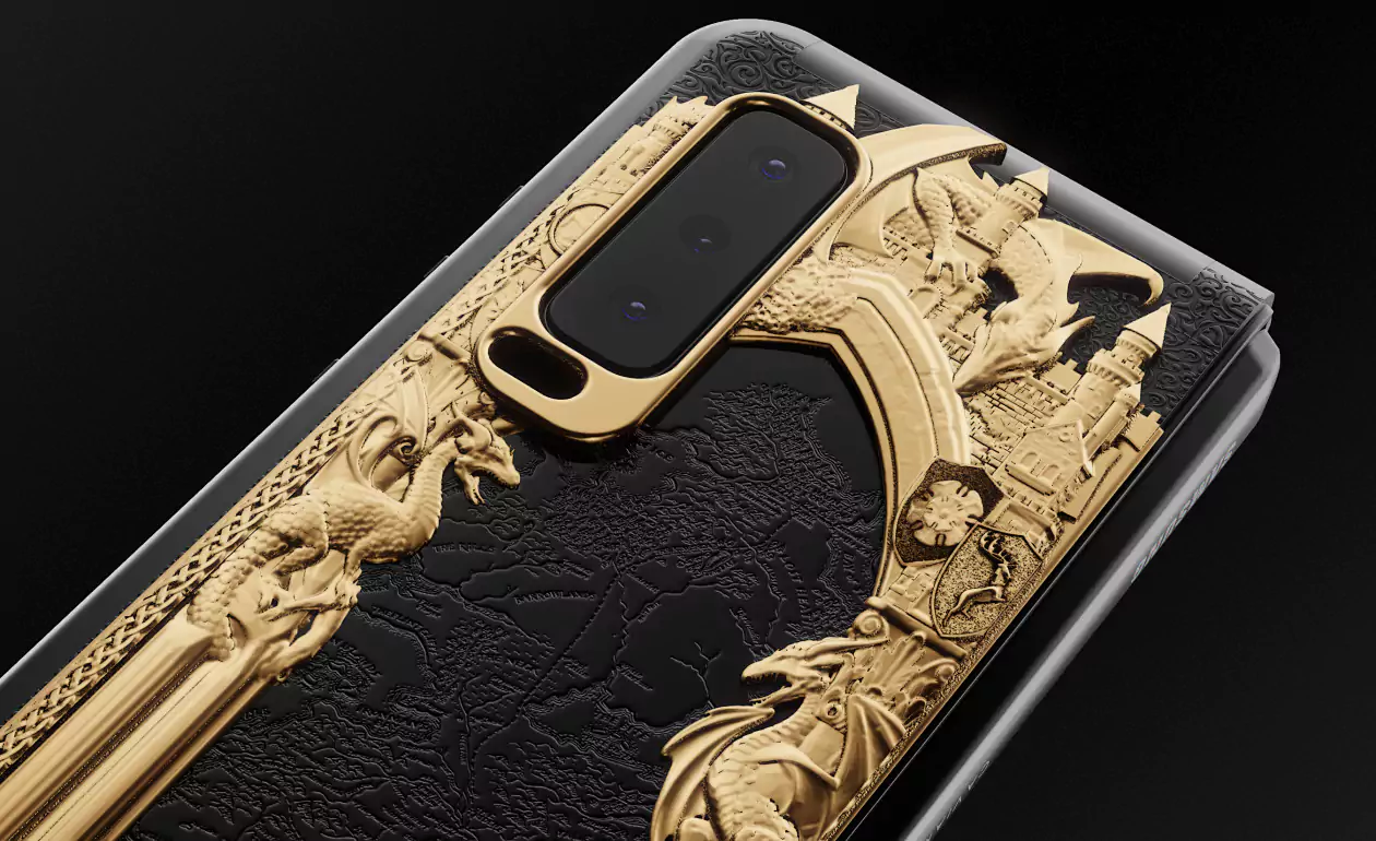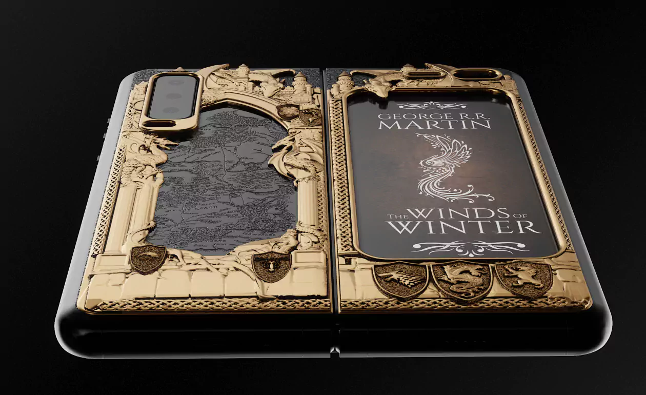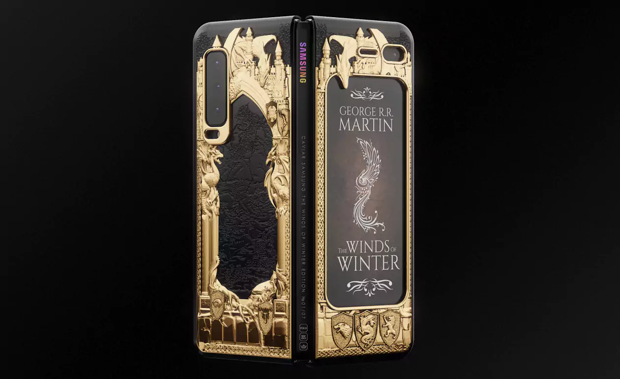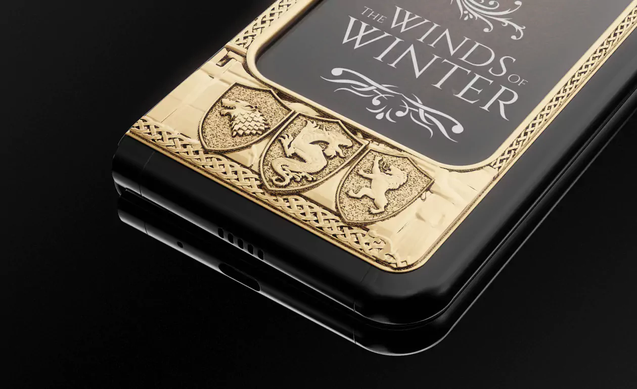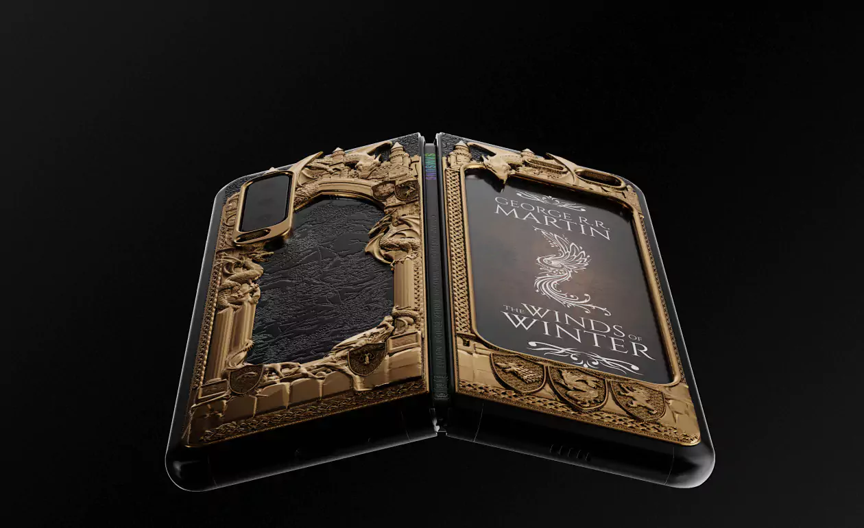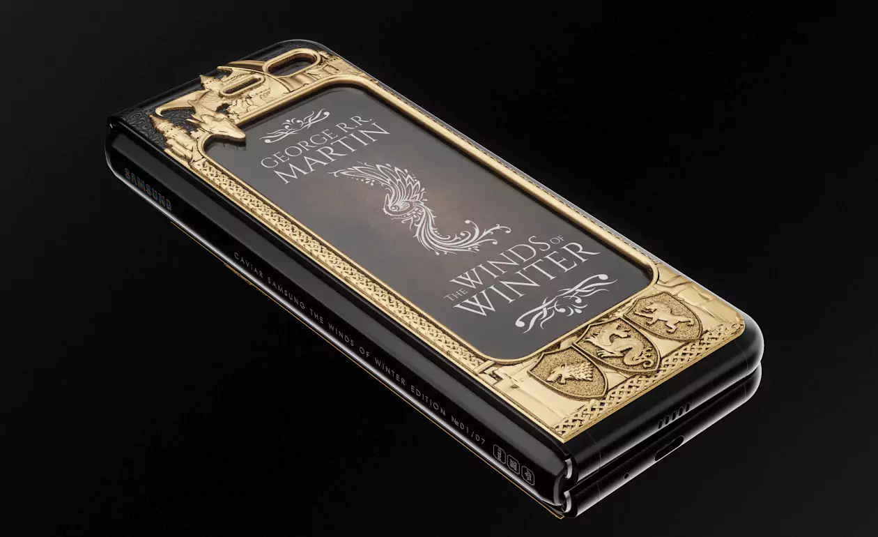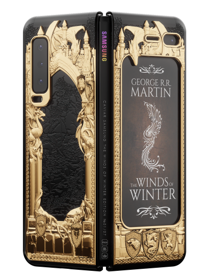 Thinking that the opening format of the smartphone resembles a book, the brand’s designers gave vent to their imagination and turned the body of an extraordinary device into the cover of George Martin’s long-awaited book “The Winds of Winter”.
