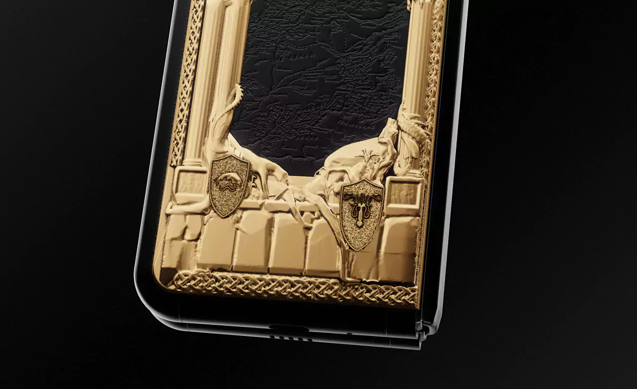 A magnificent, detailed, voluminous bas-relief, covered with gold, refers to the history of the famous saga “Song of Ice and Fire”, turned into the epic series “Game of Thrones” - important and recognizable symbols of houses, as well as a map of the Seven Kingdoms - appear before us in everything their splendor and surround the front screen with a precious pattern.