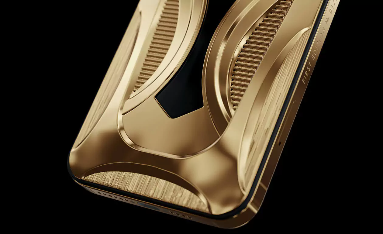 The body of the smartphone is made of gold-colored titanium, which is advantageously set off by black titanium inserts. Together they form an unforgettable duo of noble shades. The designers used high-tech materials and techniques: laser engraving on metal and black G10 in the form of a bezel in a frame.