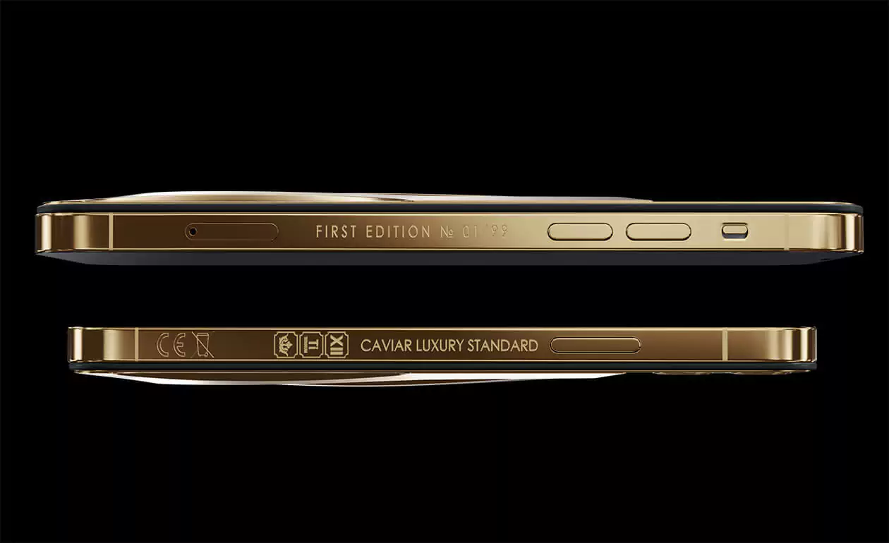 What do you think will always be in value and demand: gold or high technology? We don't feel like choosing, so let us introduce the new iPhone 14 Pro design made from tough rocket-grade material and laser-engraved in gold. The synthesis of luxury and technology in the new Caviar iPhone 14 Pro Excellence Gold Titanium.