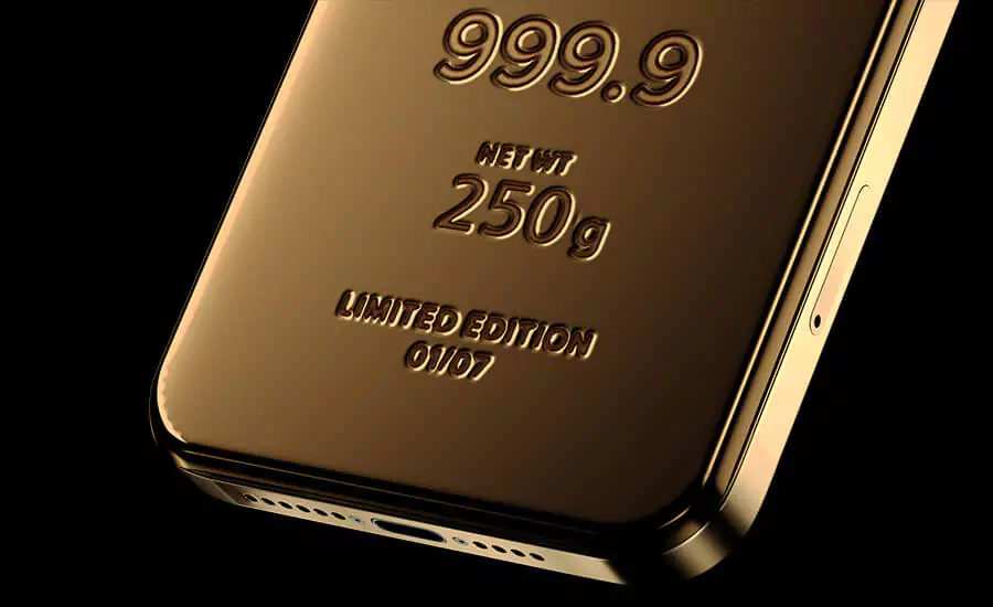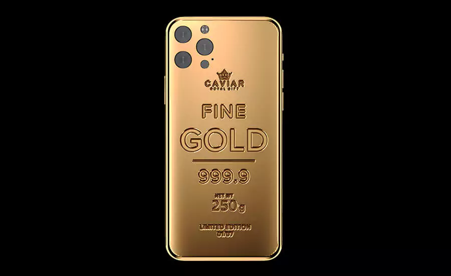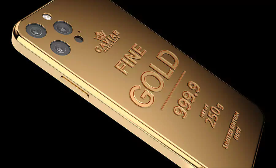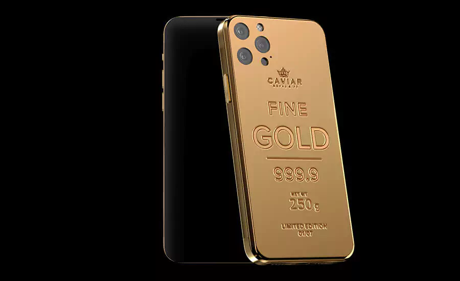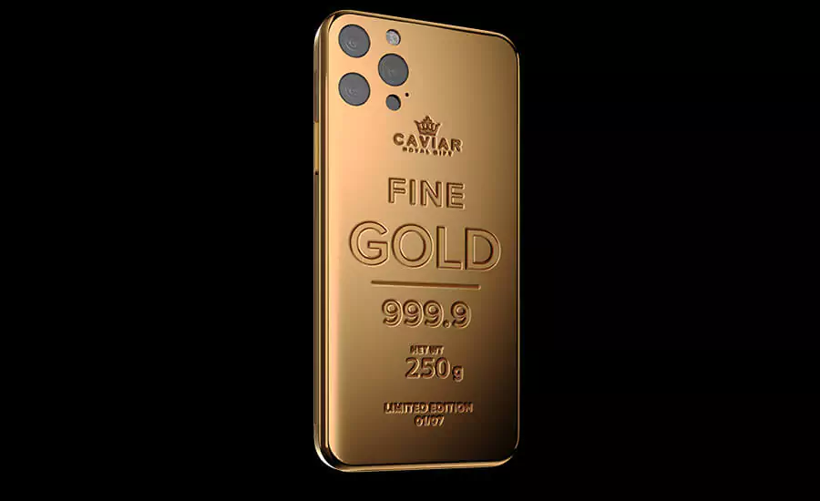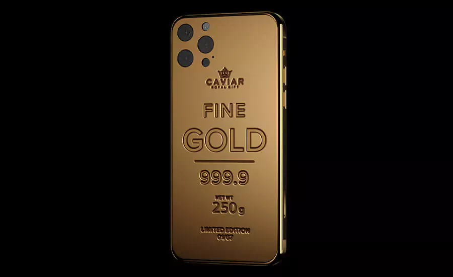 Here is a masterpiece from Caviar jewelers. A pure gold bar with iPhone features.