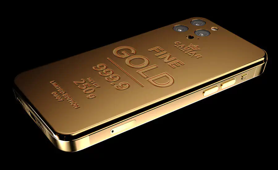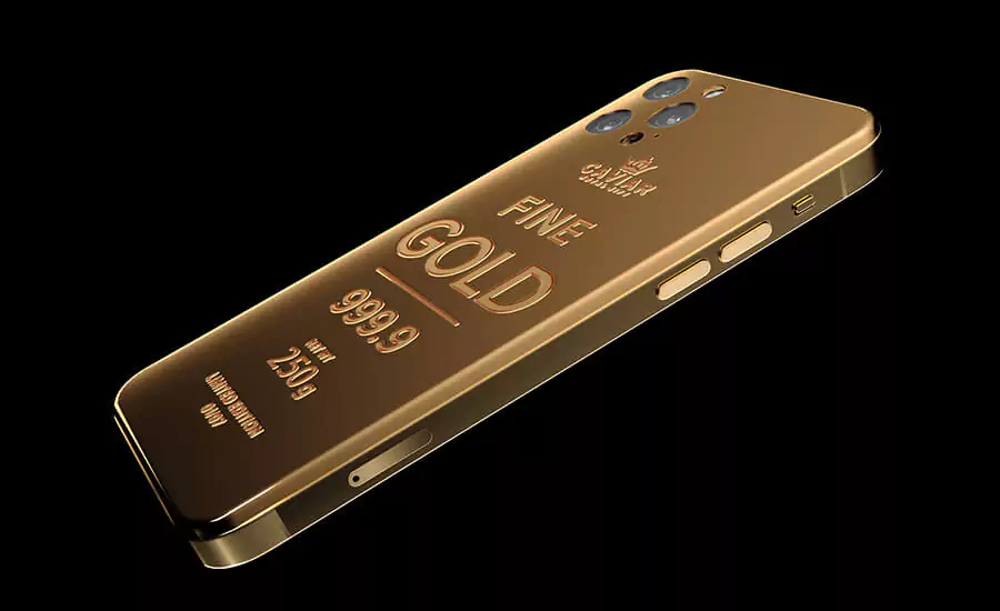 The case of the Iphone 12 PRO Goldphone Light is made of 999.9 gold.