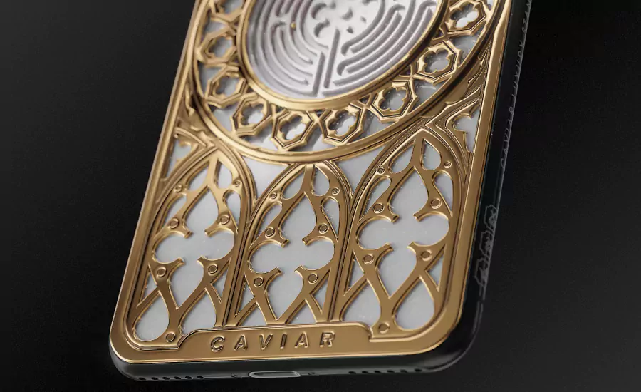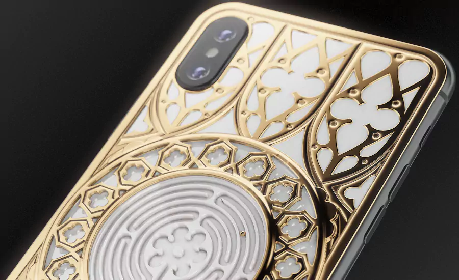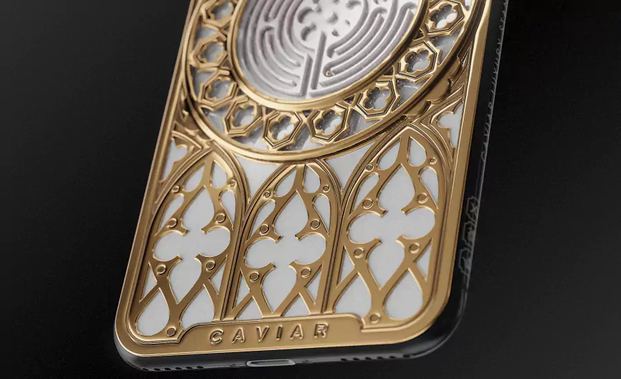 Games have always attracted people, amused, fascinated and beckoned them with the possibility to step beyond the everyday limits, find themselves in the world where everything is put on the line of the victory, and everything is in your hand. The labyrinth is rightfully considered one of the most ancient, mysterious and splendid games. An inconceivable trap that can be called as a metaphor of the whole human life – a perplexed road that will either lead to a dead end, or to the desired goal. Caviar recreated the labyrinth on the body of iPhone XS, the original of which is in the Chartres Cathedral in France. The body is decorated with exquisite medieval patterns, which marvelous tangles were also seen by the designers in the adornments of the French church; inside the labyrinth made of white composite stone, a golden ball is located that tries to reach the puzzle’s center by “running” from one miniature passage to another.