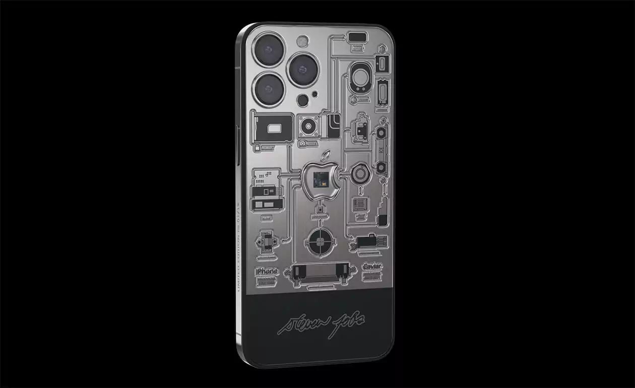 The lower case is made of titanium with black PVD coating and is laser-etched with the signature of Steve Jobs.