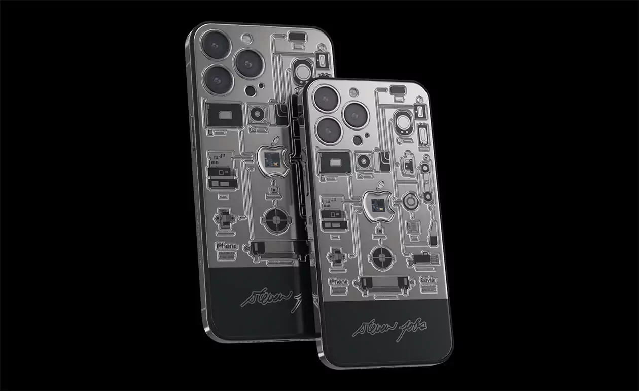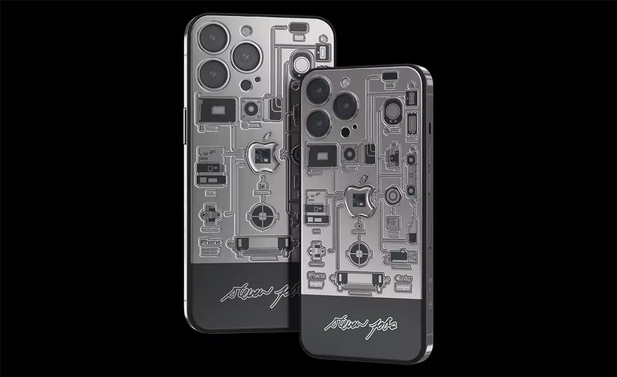 In the center of the case made of aviation titanium, there is a sealed capsule in the form of Apple's branded bitten apple with an embedded fragment of the motherboard of the very first iPhone 2G. The back cover of the smartphone is decorated with high-precision engraving depicting the technical elements of the device, which are connected together. They are striving towards the center of the world - the Apple logo - like a circulatory system pushing blood towards a pulsating heart.