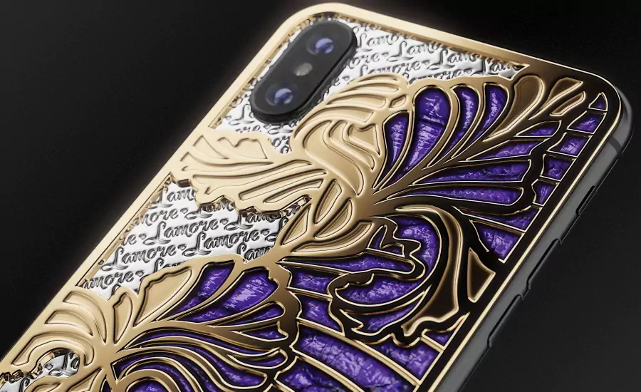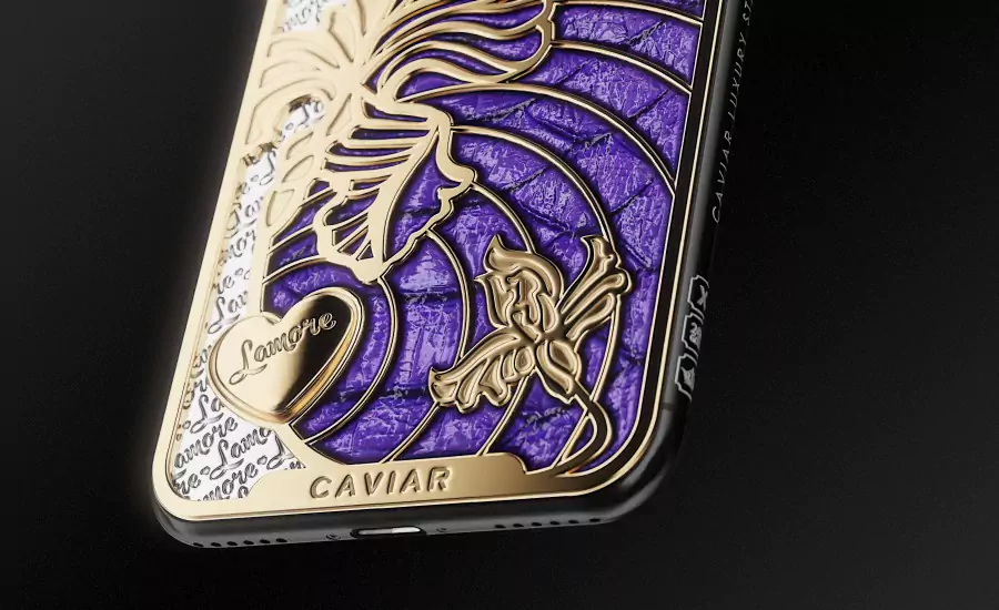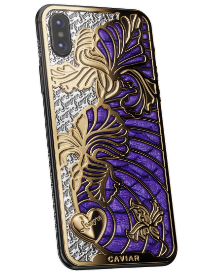 Irises are flowers to which Florence owes its name. Florence means “blossoming” and this city blossoms with fragrant, neat, unusual, bright Irises. The main Florentine love story has been and remains the love of Dante and Beatrice. The relationship of the poet of genius and the inaccessible muse is a blend of adoration, tenderness, confusion, desire, admiration and love. When creating the precious phone on which the purple Irises “are blossoming”, framed with gold-plated elements, the designers of Caviar were thinking about gorgeous Beatrice, about the old city where the poet in love who was destined to become the author of the legendary “Divine Comedy”, had been seeking a meeting with her; this is why in the look of this phone there is all the exquisiteness, refinement and beauty that lives in the poetry. On the gold-plated heart, the love confession “L'amore” in the language of Dante is engraved for centuries.