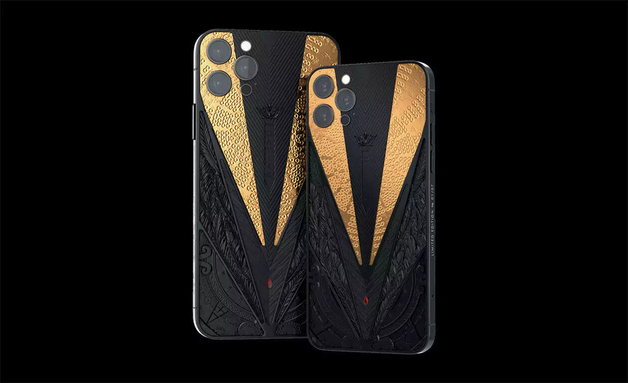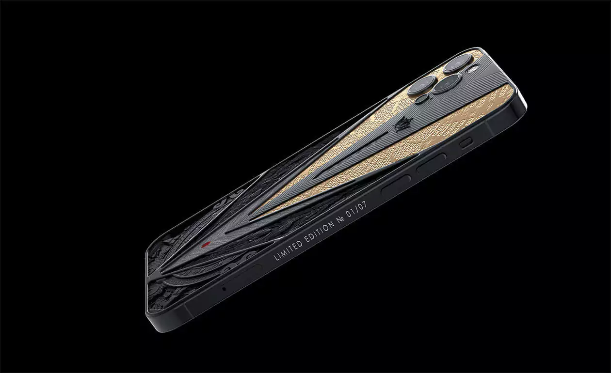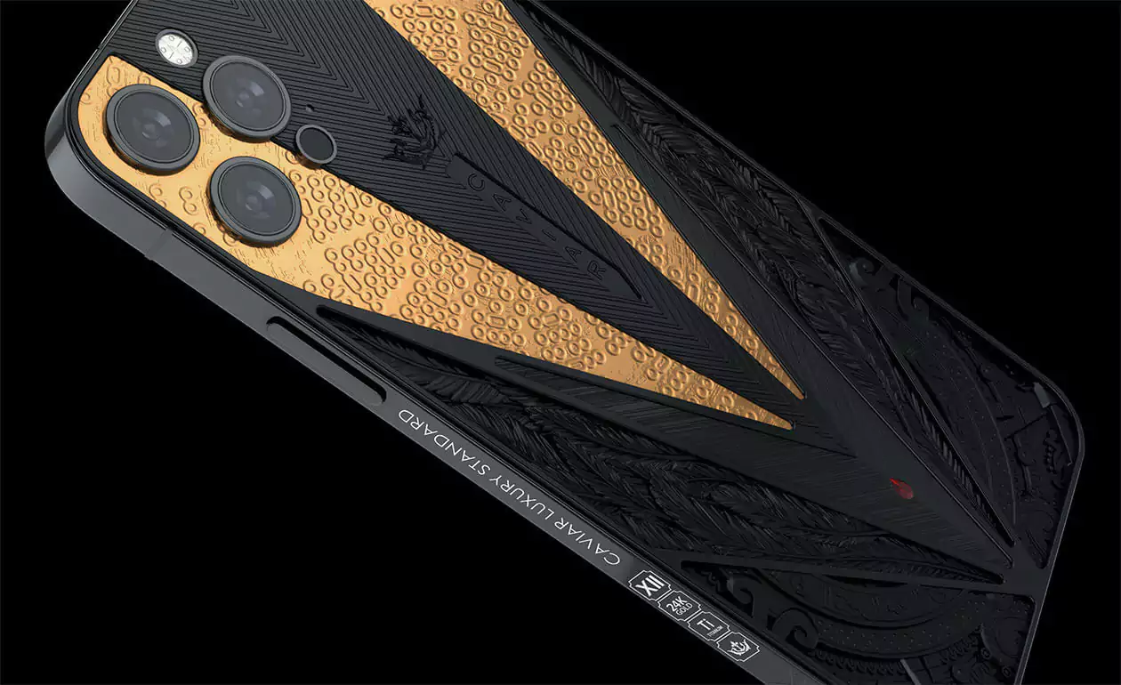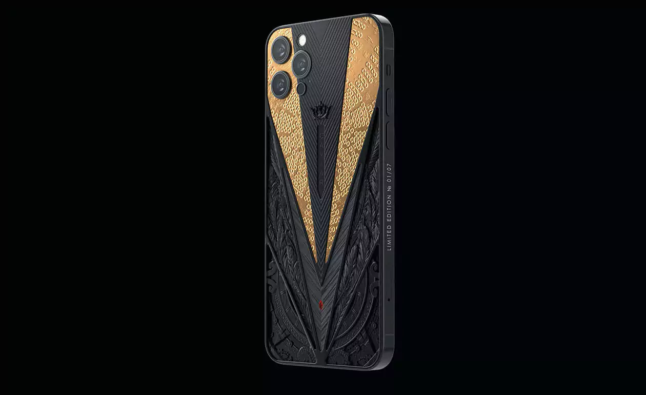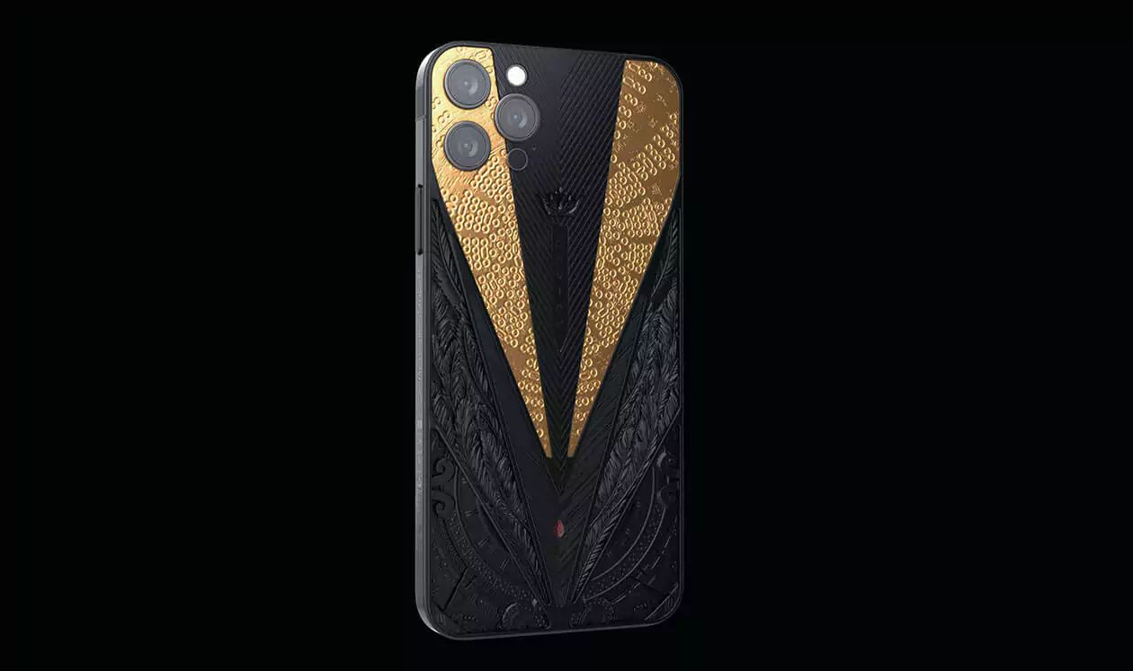 The smartphone is made of titanium with a black super-strong PVD coating, used in the manufacturing of Swiss watches, with inserts of solid gold with a laser pattern. The centerpiece of the model is titanium with three-dimensional feathers and a Mayan calendar.