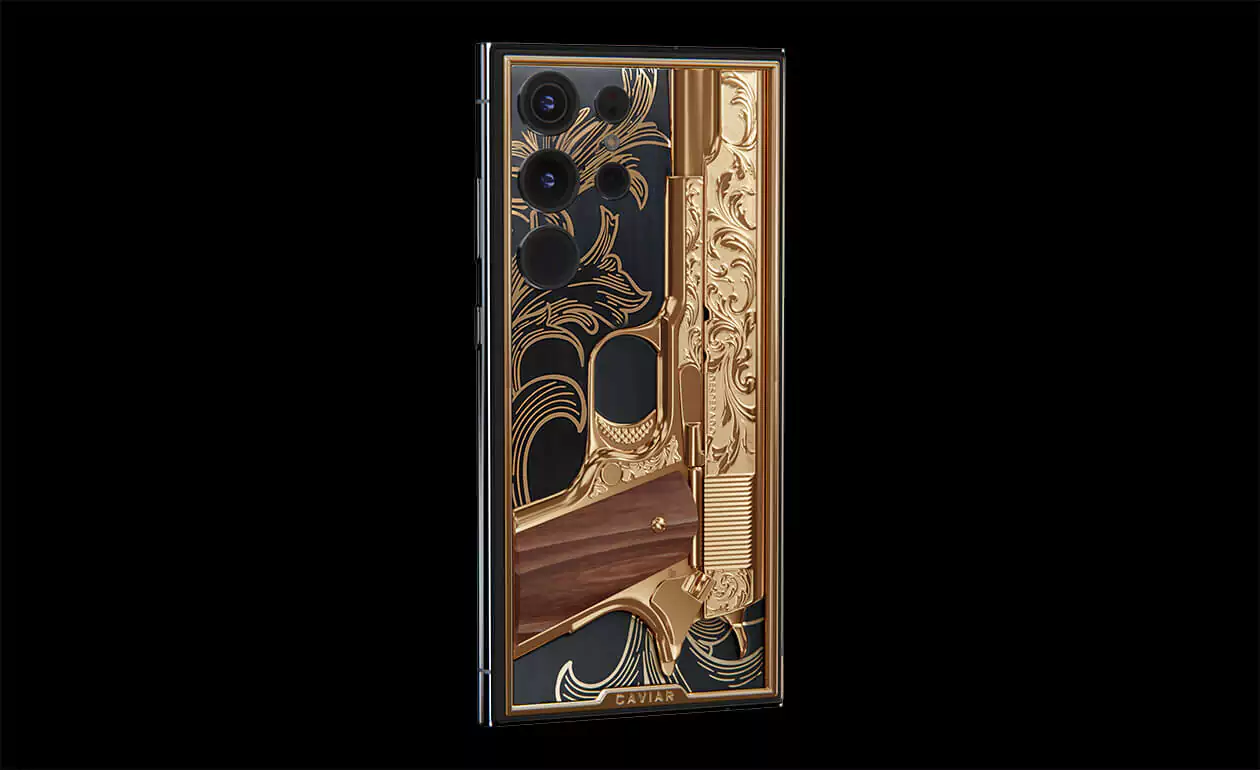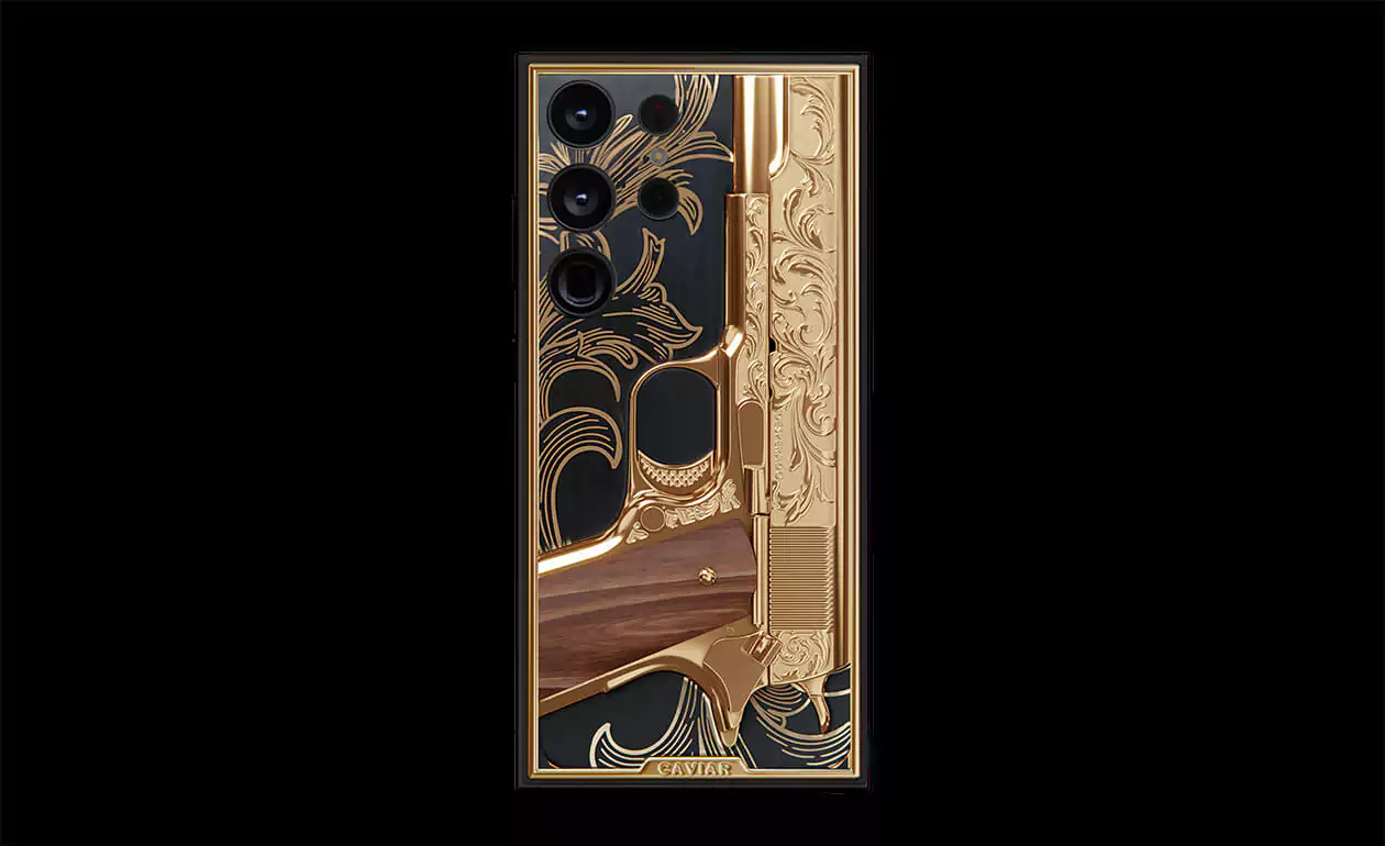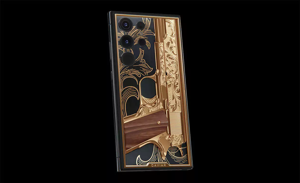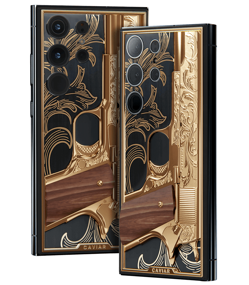 Golden Gun: The bas-relief of a miniature "Colt 1911", decorated with a carved pattern and a wood insert. The decoration is not a separate element from the body and cannot be used to fire bullets.
