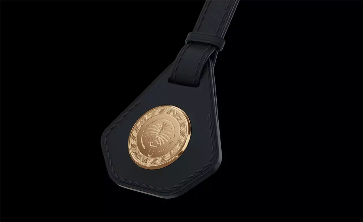The case is made of durable and lightweight black and gold titanium. The device is decorated with the symbol of Dubai, the magnificent Palm Jumeirah.
