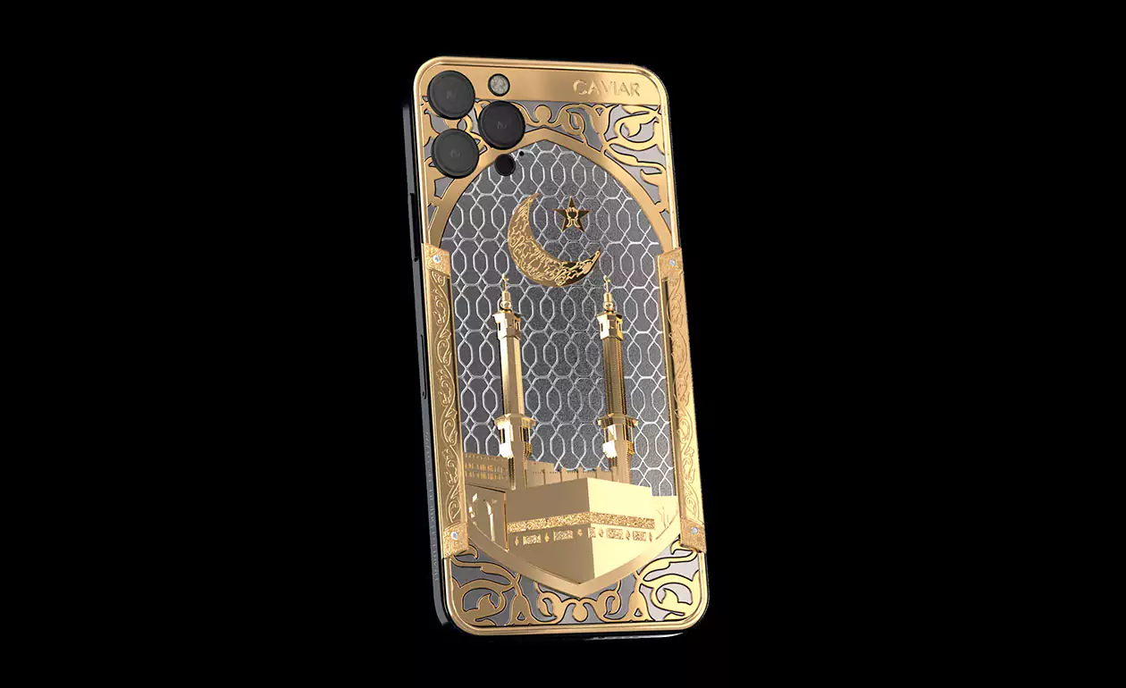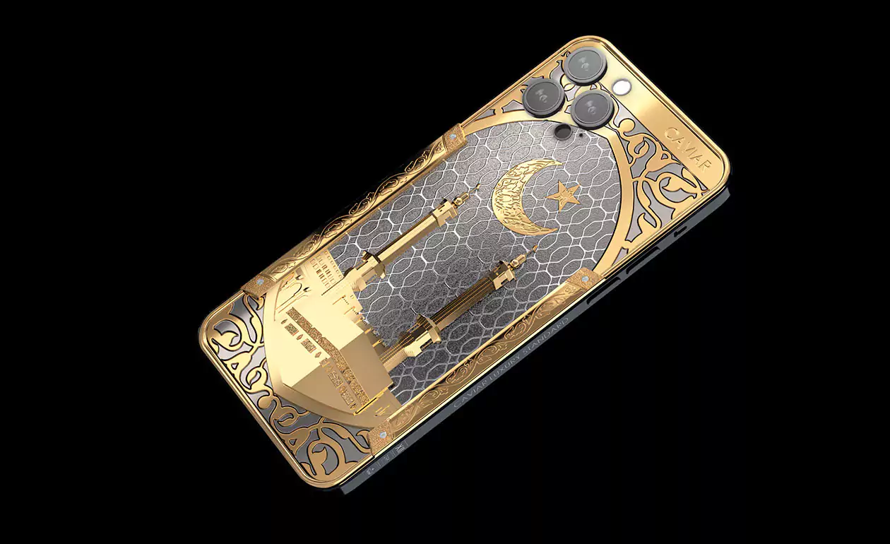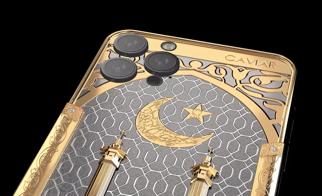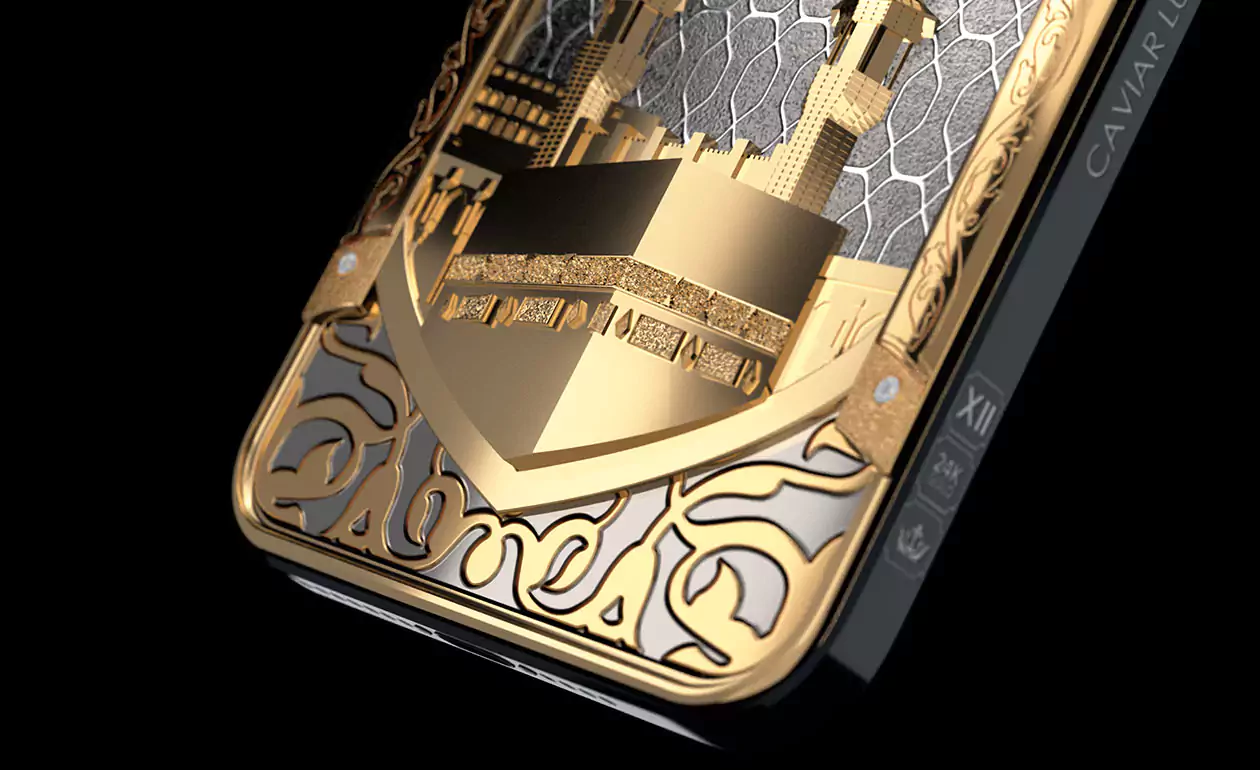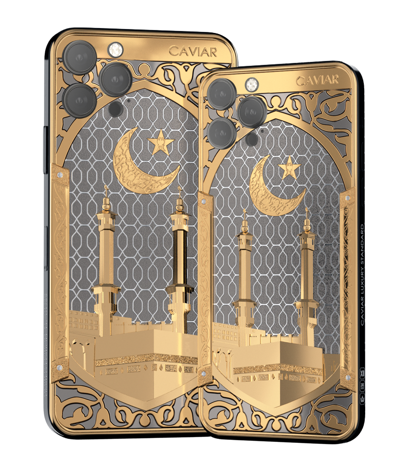 The outstanding beauty, finesse, picturesqueness and elegance distinguish the new model in the collection dedicated to the Islam. The phone’s design harmoniously and spectacularly combines the elements of white titanium and goldplating producing the expressive play of contrasting shades. On the base covered with white there is the volumetric picture, as if it is embroidered with golden lace, depicting the legendary views of the forbidden mosque Al-Haram in Mecca. The main holy city for the Muslims where the entrance is closed for the representatives of other religions, Mecca inspired the designers and jewelers of Caviar to create this exclusive model.