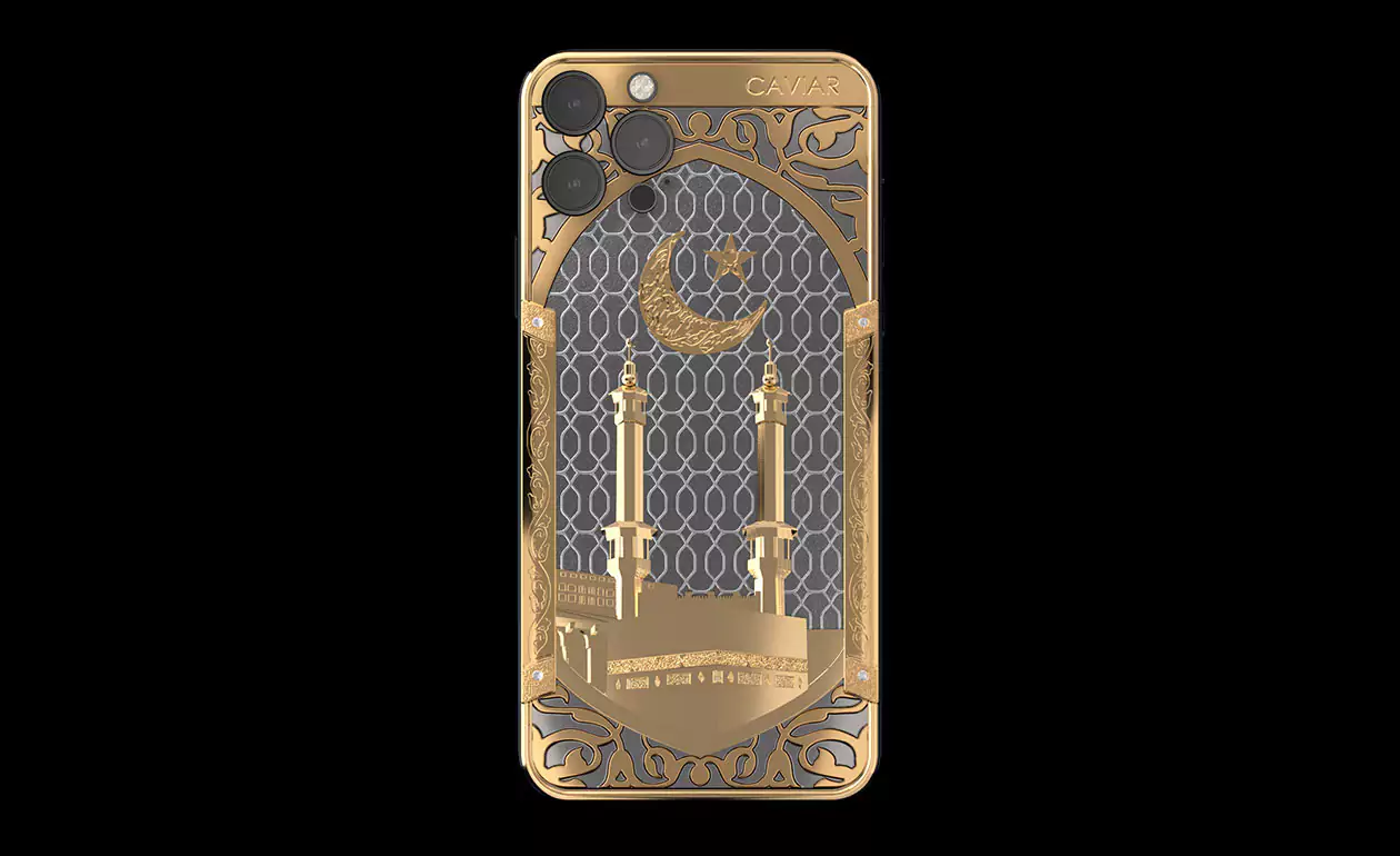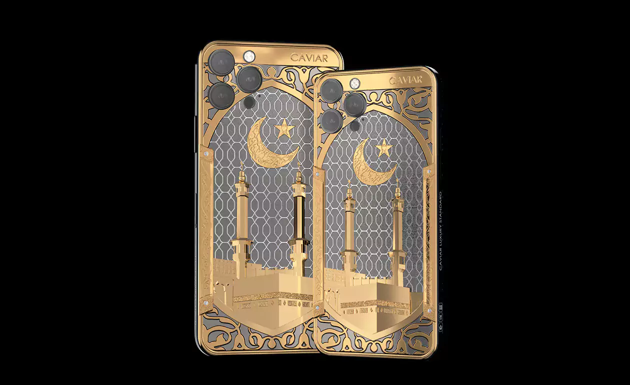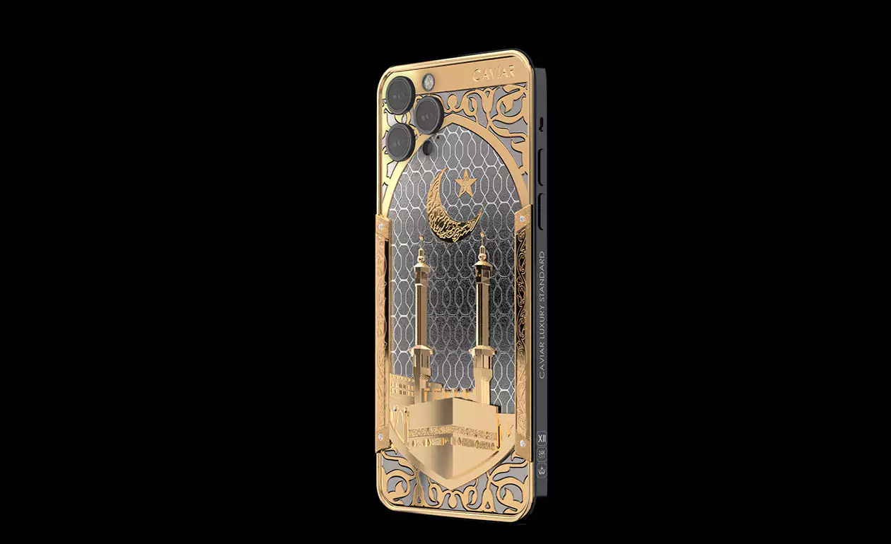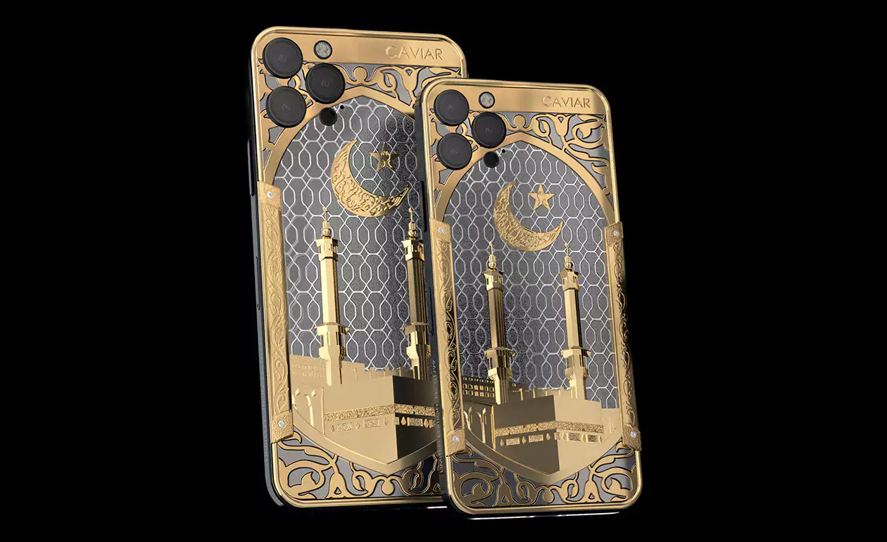 The outstanding beauty, finesse, picturesqueness and elegance distinguish the new model in the collection dedicated to the Islam. The phone’s design harmoniously and spectacularly combines the elements of white titanium and goldplating producing the expressive play of contrasting shades. On the base covered with white there is the volumetric picture, as if it is embroidered with golden lace, depicting the legendary views of the forbidden mosque Al-Haram in Mecca. The main holy city for the Muslims where the entrance is closed for the representatives of other religions, Mecca inspired the designers and jewelers of Caviar to create this exclusive model.