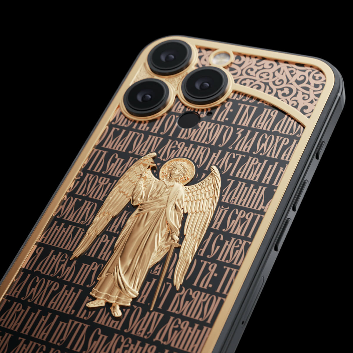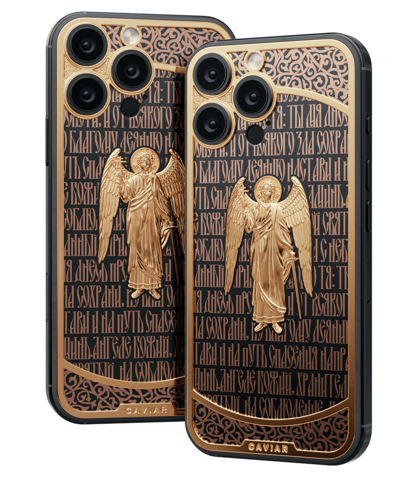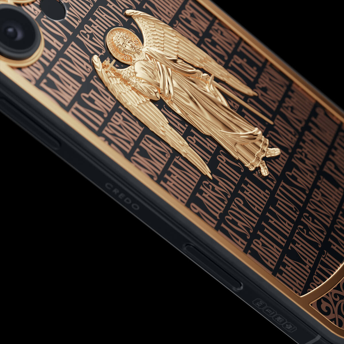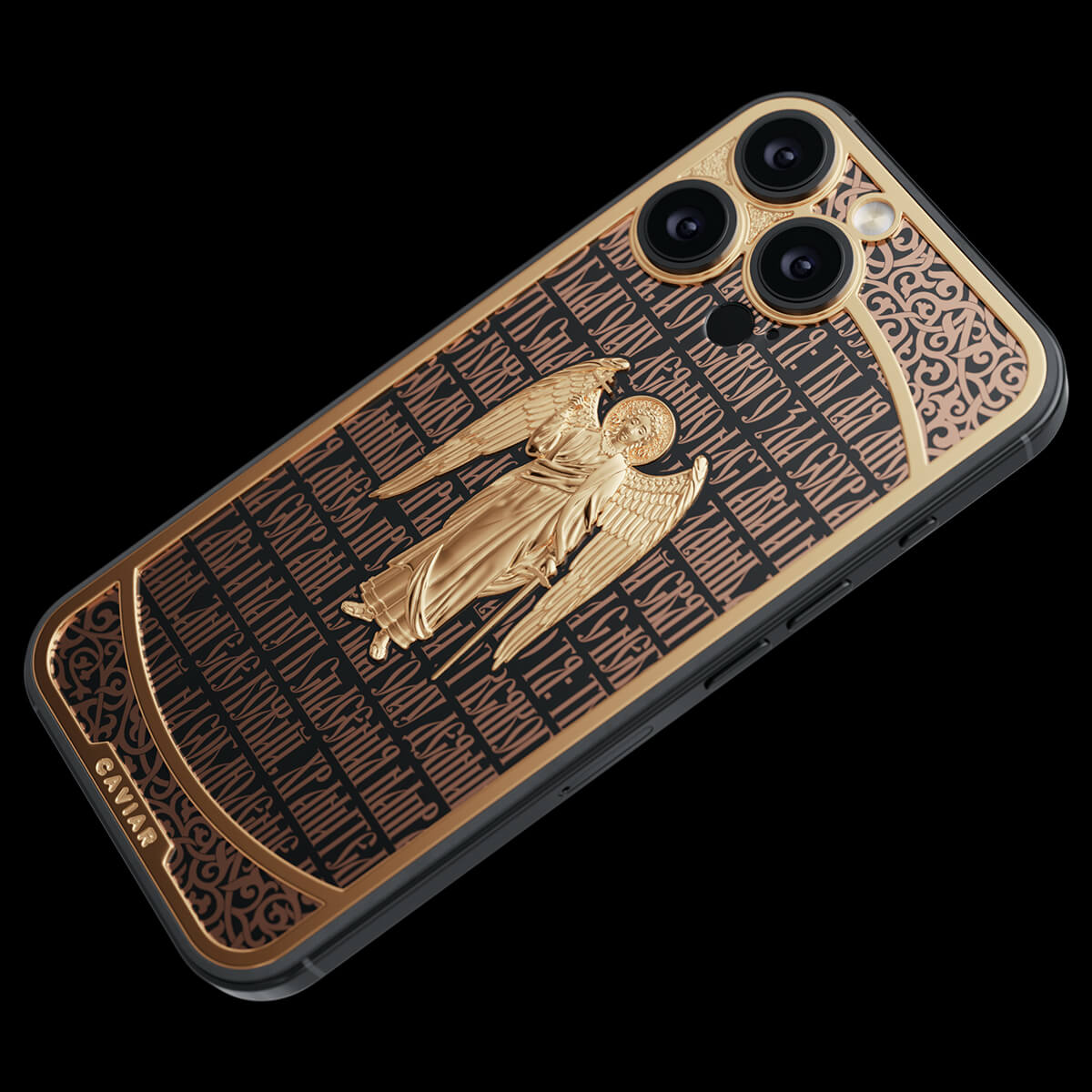 In the Guardian Angel model, Caviar unites spiritual symbolism with the artistry of fine craftsmanship. The back panel features a delicate bas-relief of a guardian angel, richly finished in pure 24-karat gold. Every fold of the robe, every serene line of the face is sculpted with reverent precision.