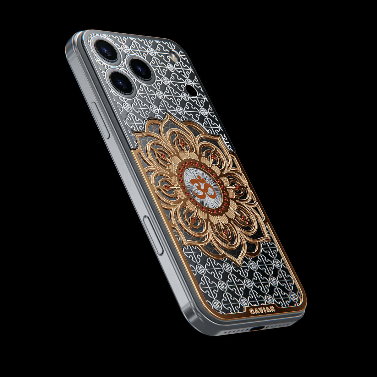 The OM model by Caviar embodies Eastern philosophy. At the heart of the composition is a three-dimensional lotus — a symbol of enlightenment — inlaid with fine jewelry enamel. At the very center of the flower shines the «Om» symbol, a reminder of balance, inner peace, and the energy of the universe.