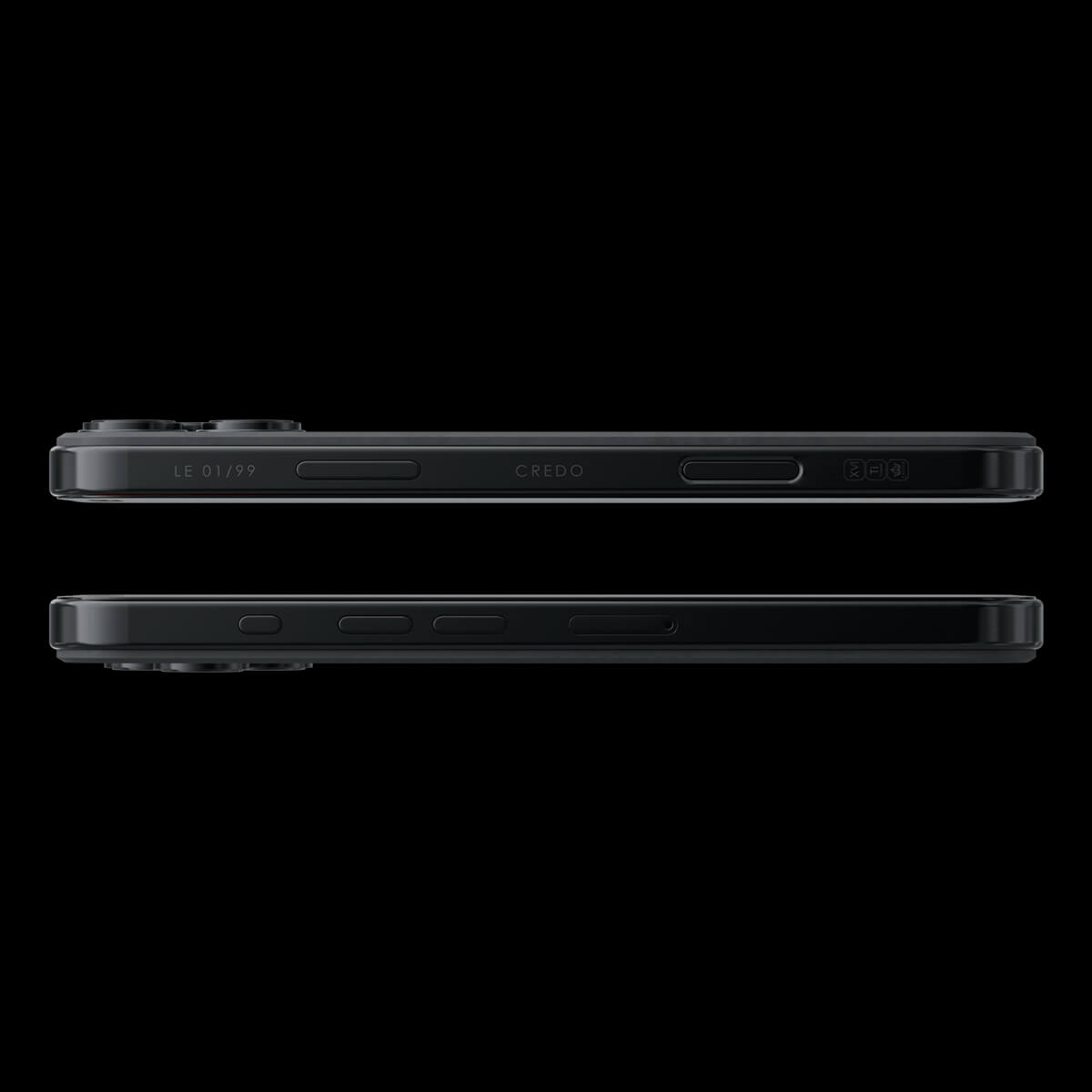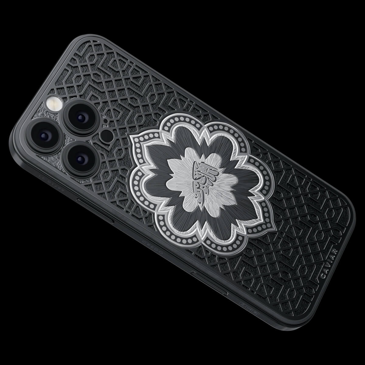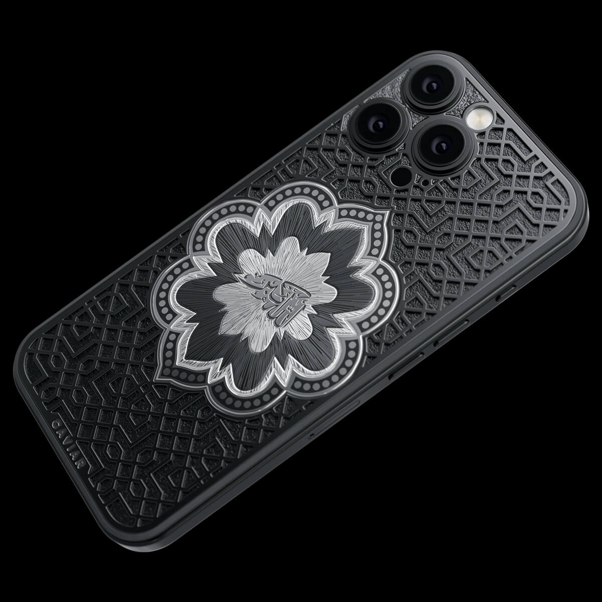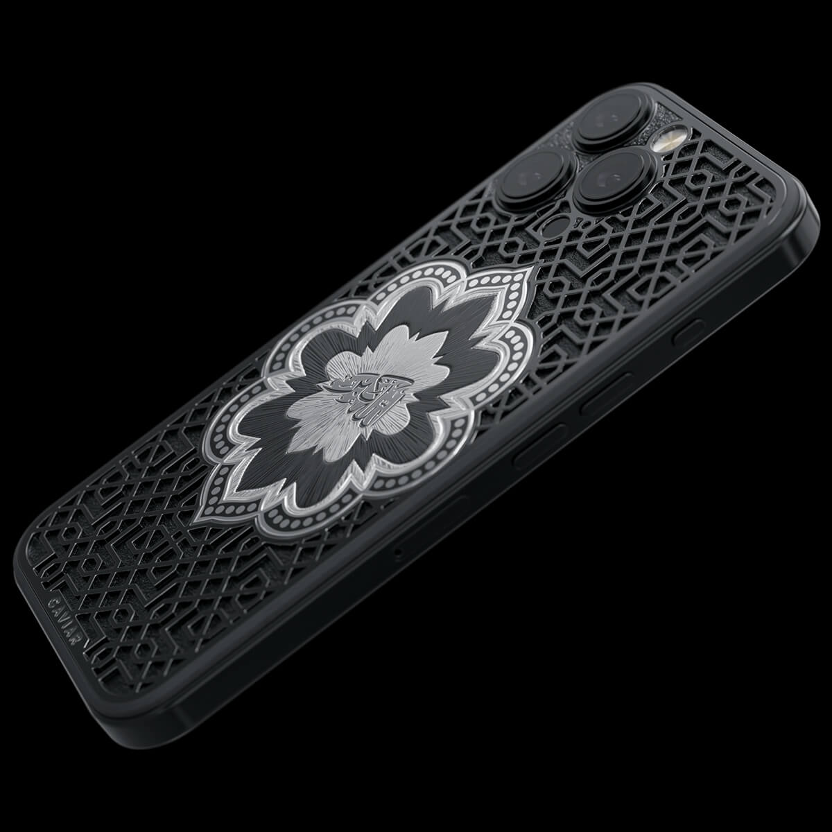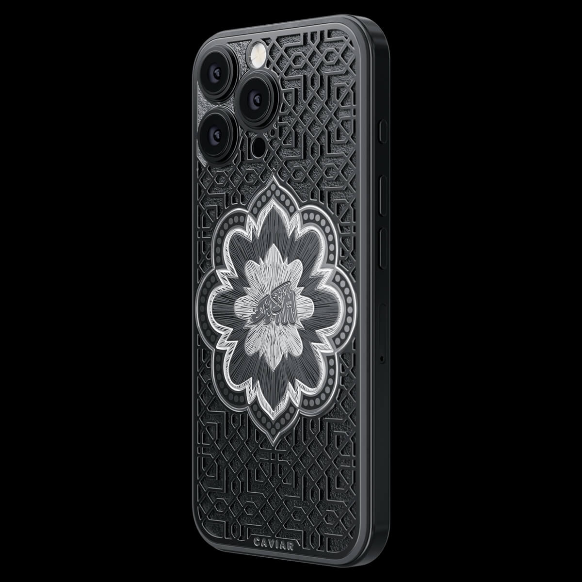 Introducing the «Reverence» smartphone. The central design element is an Eastern floral ornament, engraved with the Arabic inscription «Allahu Akbar» («God is Great») at its heart. The model features a minimalist black-and-silver color palette that emphasizes the nobility and depth of the symbolism.