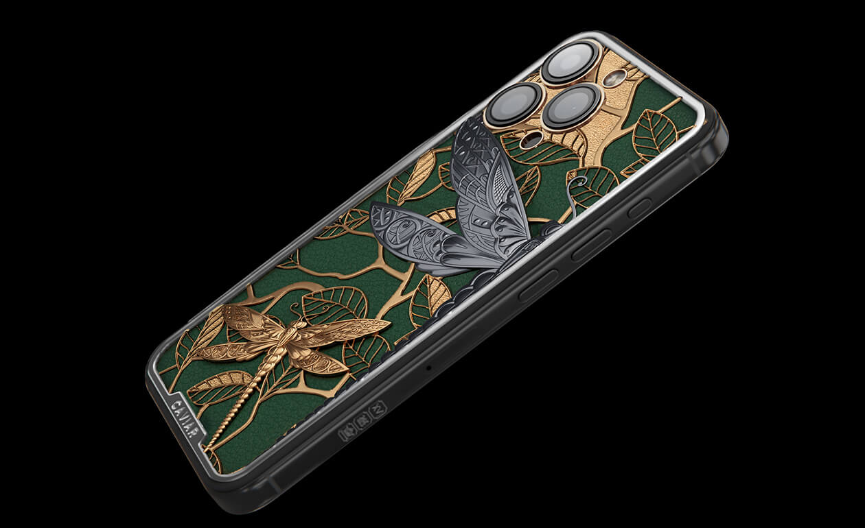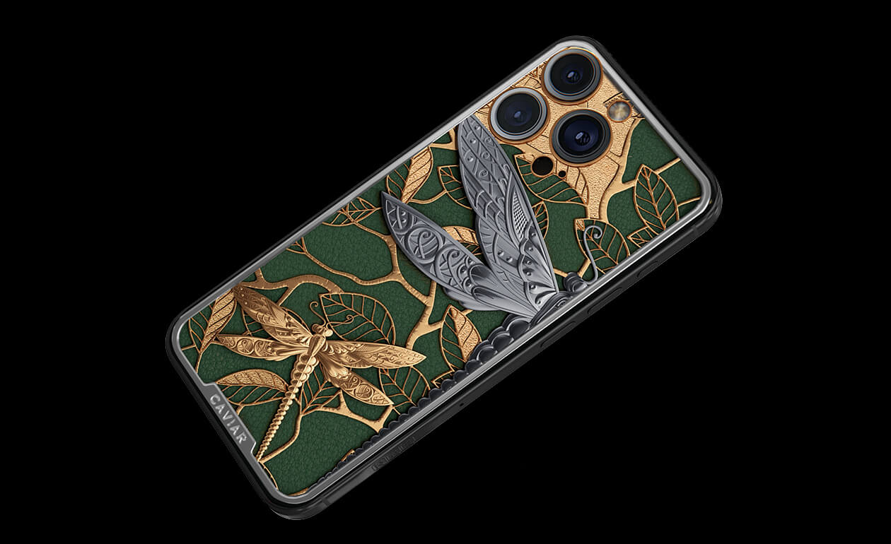 The dragonfly is a symbol of courage, energy and good luck. Most of all, this symbol is revered in Japan. In ancient times, before an important battle, the Japanese sacrificed dragonflies to the gods, asking for good luck in battle and victory over enemies. The beauty of the dragonfly captivated Caviar jewelers and inspired to create the iPhone 17 Pro Dragonfly.