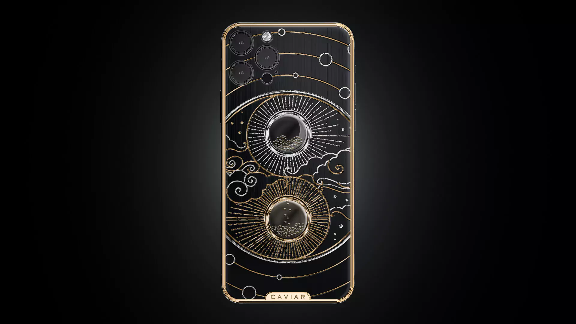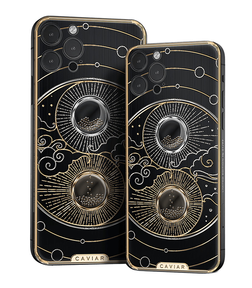 Caviar iPhone 14 Pro Parade of the Planets Moon and Sun is a jewelry smartphone with a sophisticated design and precious decorative elements. The body is made of blackened titanium used in rocketry: the Proton-M engine and the Falcon 9 body are made of this material.