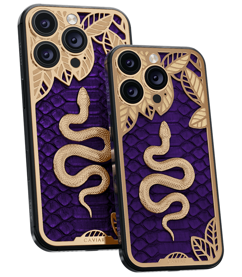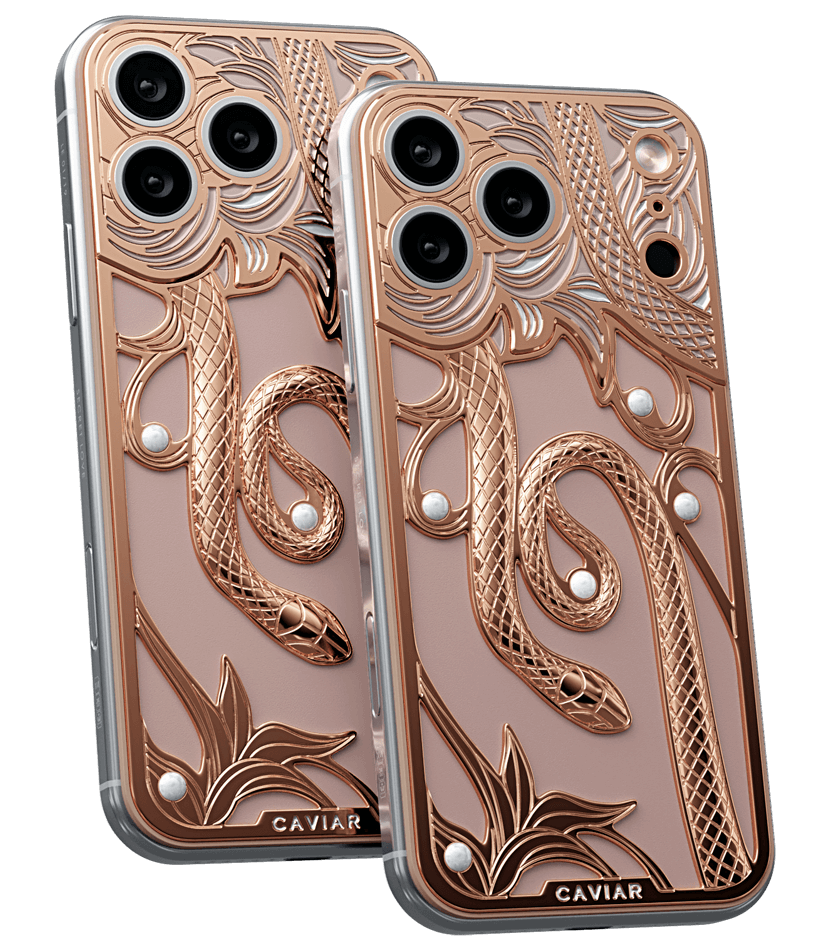 Decor features a serpent and leaves crafted from jewelry alloy with a double layer of rose gold plating.