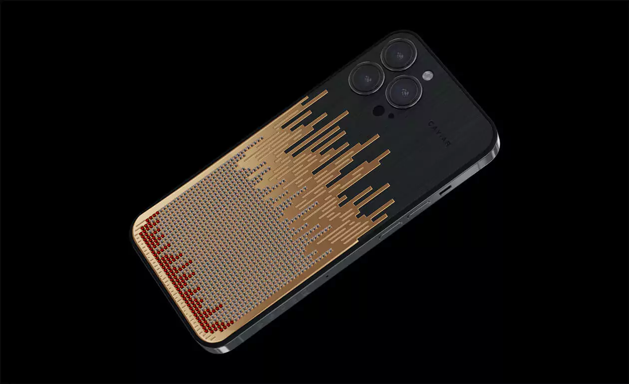Caviar presents its own interpretation in the new Teradiamond model. The phone with the largest memory capacity in Apple's history is now also one of the most luxurious models. Caviar designers embedded 1,024 diamonds into the body of this model - to match the number of gigabytes of memory in the new iPhone 13. The purest white stones contrast elegantly with 128 blood-colored rubies that remind us of the true meaning of the word ""tera-"".