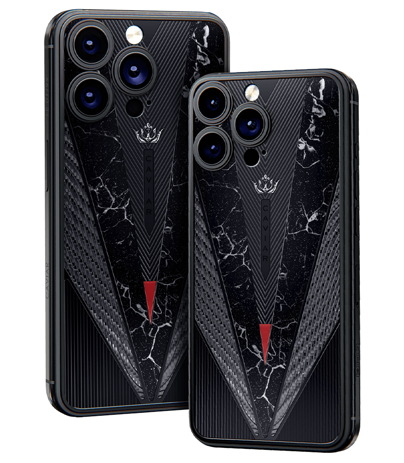 Masculine and slightly soldierly duet of titanium and carbon immediately draws attention to the owner of the gadget. An imitation of a sword with a drop of blood on the tip and black titanium details make the accessory even more dynamic and solid. The combination of black and red looks aggressive, impressive and royal, bringing back the cruel era of the Middle Ages, the time of fearless heroes.